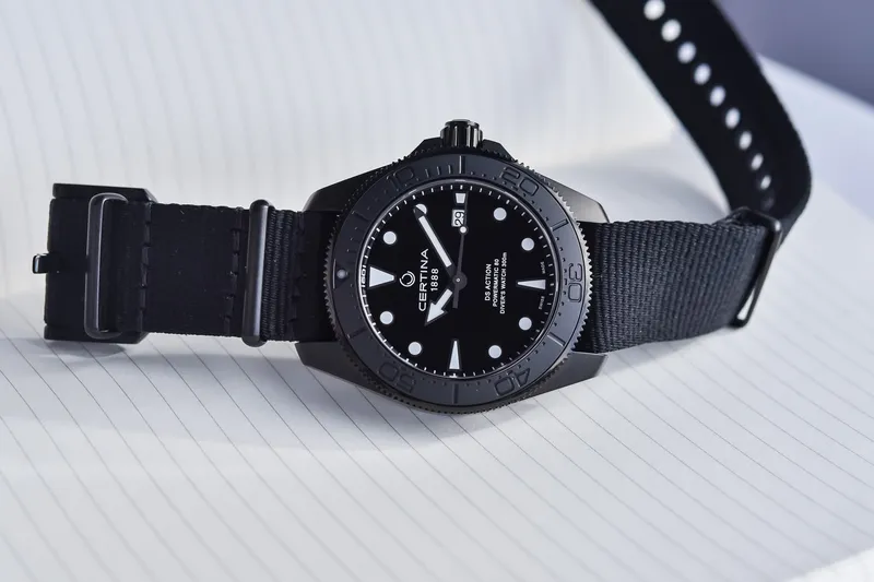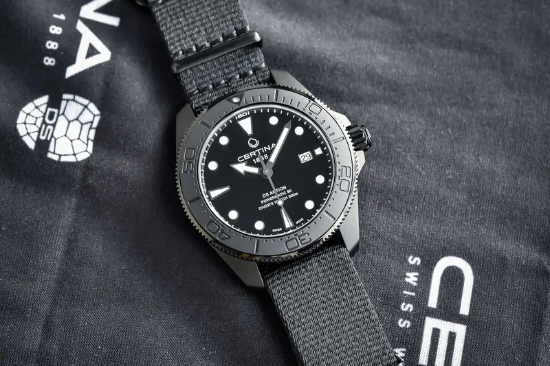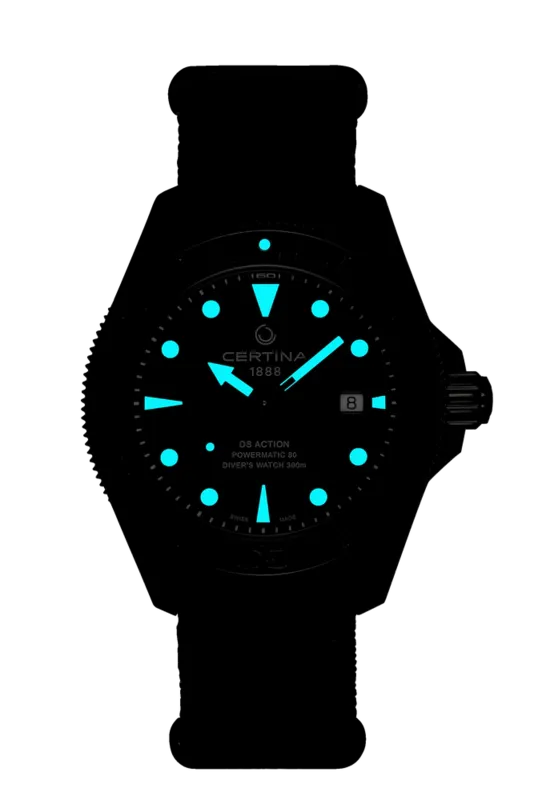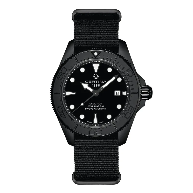 C032.607.38.051.00 שעון סרטינה לגברים דגם מושחר עם 5 שנים אחריות יבואן רשמי | דגם ברצועת בד | מנגנון אוטומטי | Certina Ds Action Diver Powermatic C032.607.38.051.00