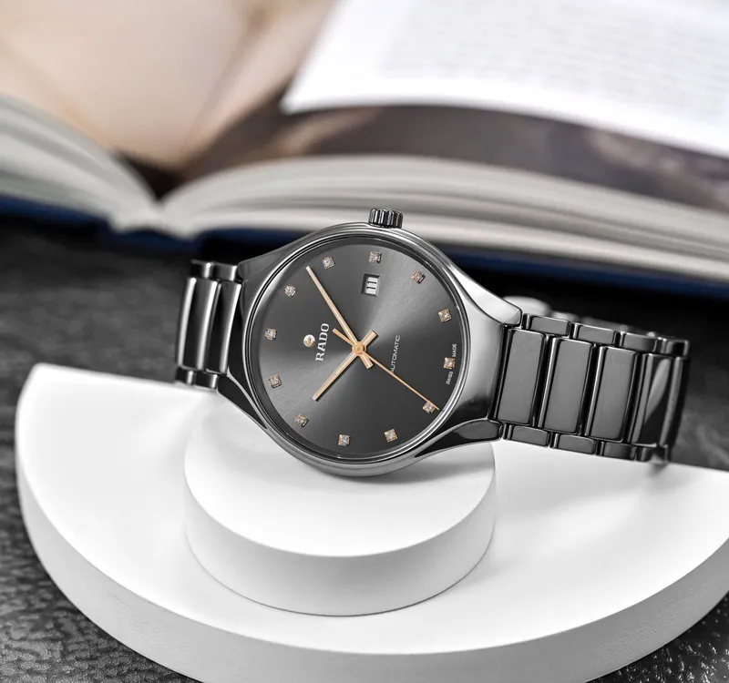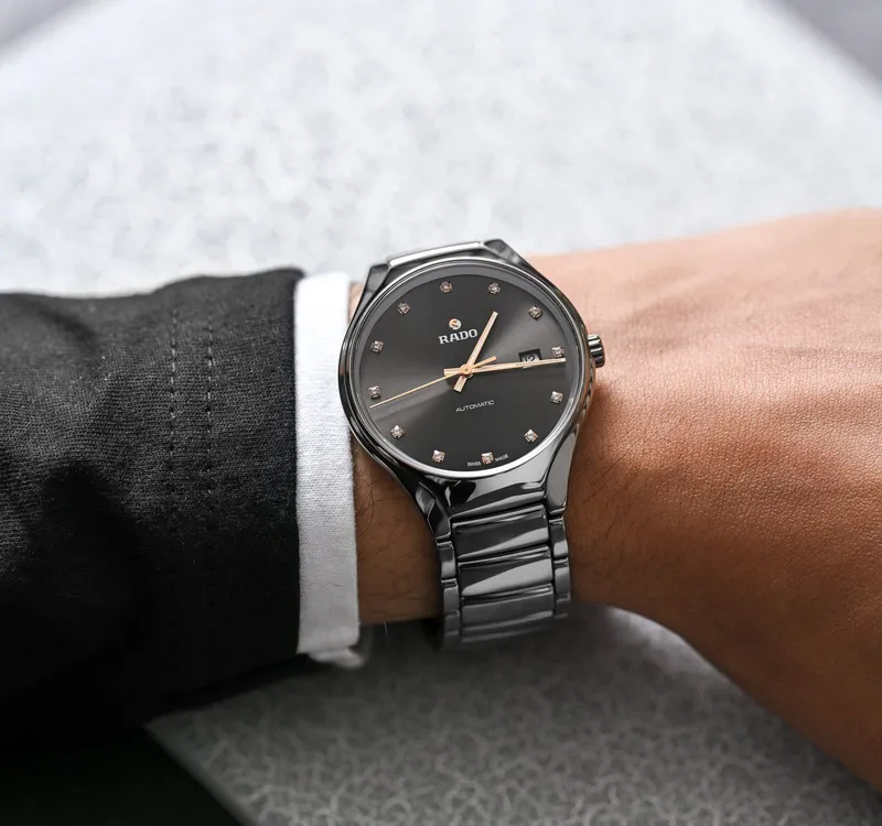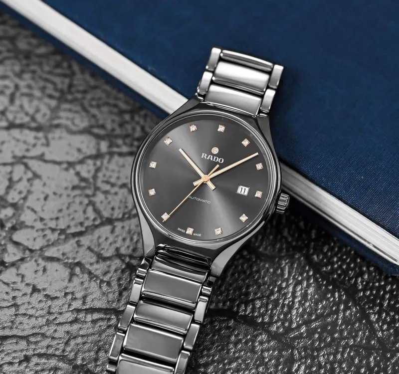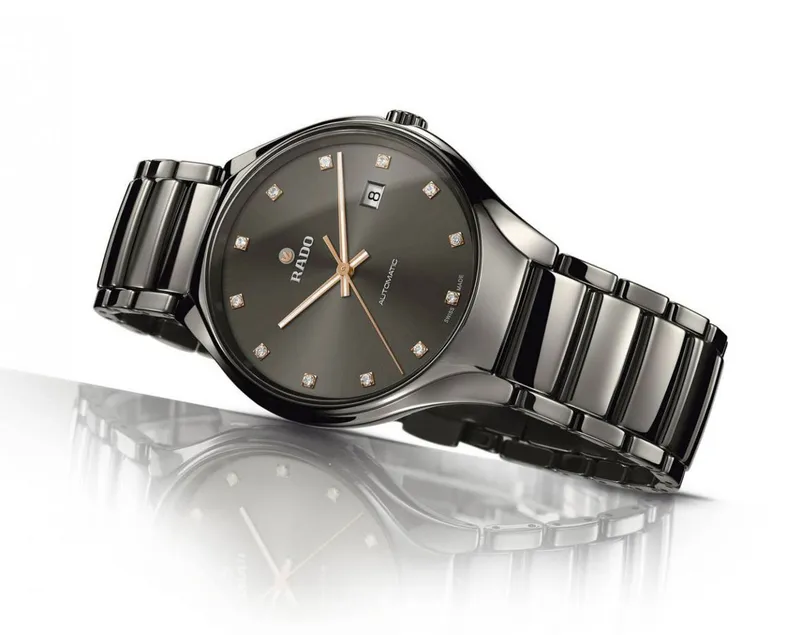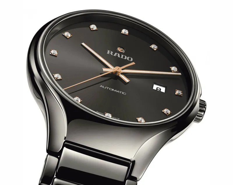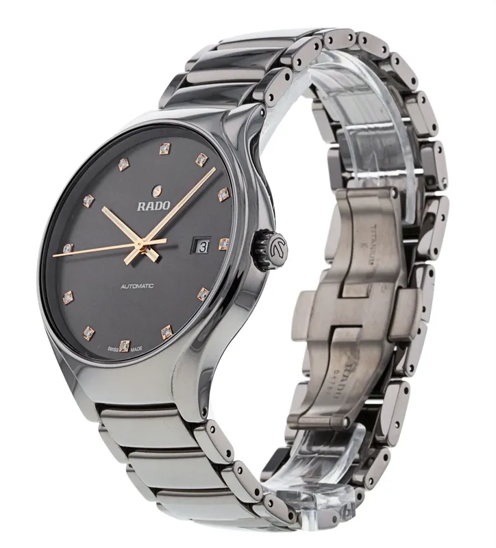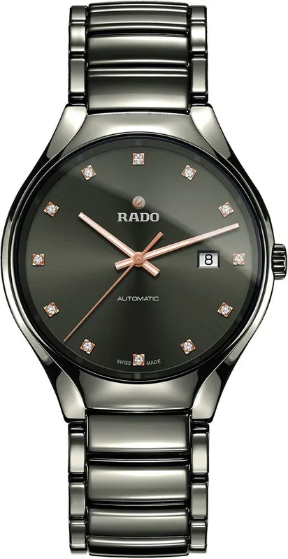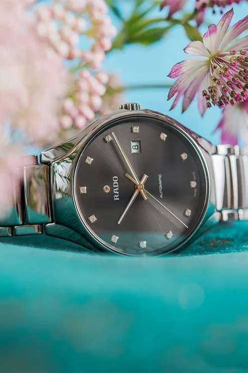 R-61103073 שעון ראדו יבואן רשמי מסדרת טרו צבע פלאזמה אפור מיוחד לוח 12 יהלומים לגברים | מנגנון אוטומטי 80 שעות | 5 שנים אחריות | Rado True Automatic Diamonds 40 mm R27057732