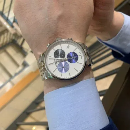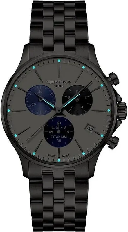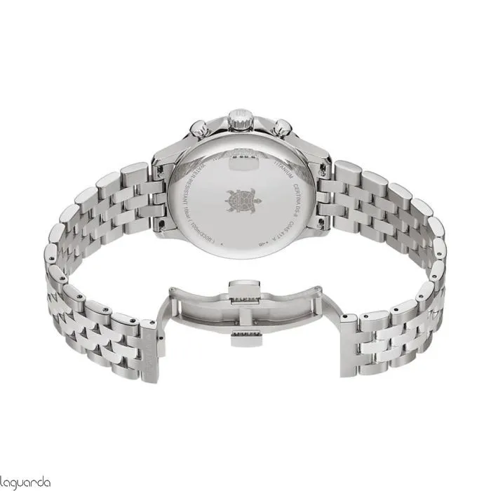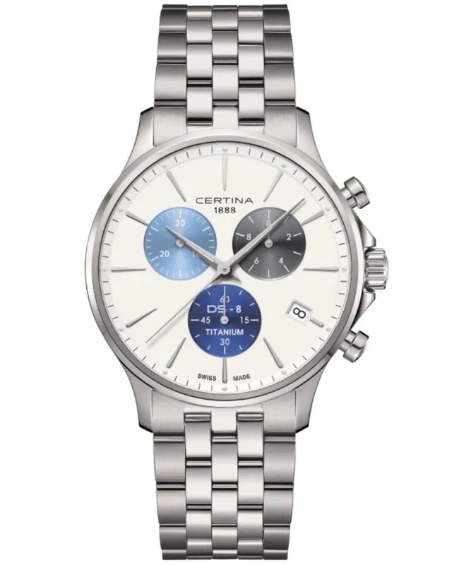 C045.417.44.011.00 שעון חדש לגברים של סרטינה דגם טיטניום כרונו מסדרת DS8 | לוח לבן כחול מיוחד | 5 שנים אחריות | מנגנון שווצרי איכותי | Certina Men's DS-8 Chrono (41mm) Titanium Bracelet C045417440110