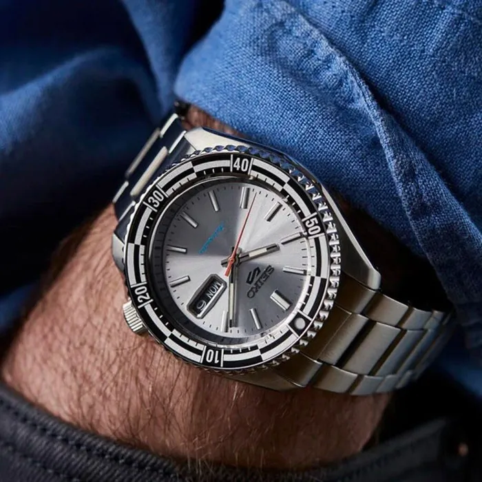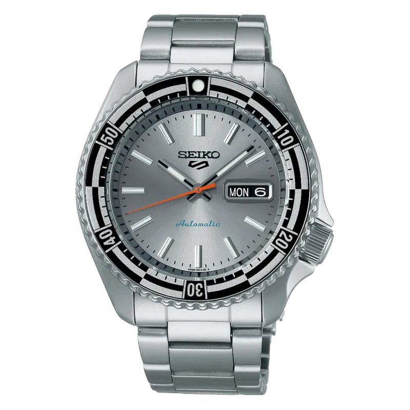 SRPK09 שעון סייקו מהדורה מיוחדת ל55 שנים | דגם אוטומטי לוח כסוף תאריכון כפול | מלאי מוגבל | שנתיים אחריות | Seiko 5 Sports 55th Anniversary Special Edition SRPB09