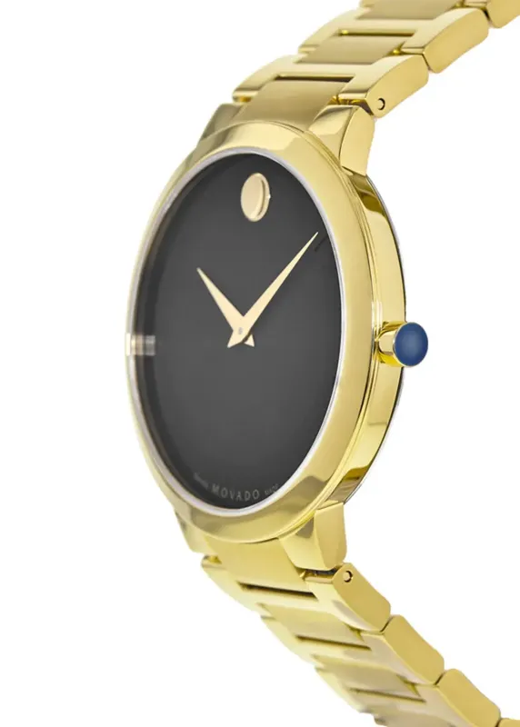 0607121 שעון יד מובאדו זהב לגברים | דגם מסדרת מודרן | לוח שחור נקי ואלגנטי | שנתיים אחריות יבואן רשמי | מלאי מוגבל | Movado Modern Classic Two Tone Steel Black Dial Men's Watch 0607121