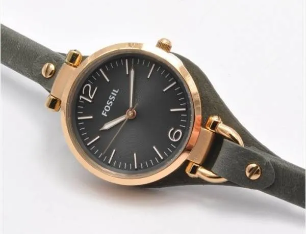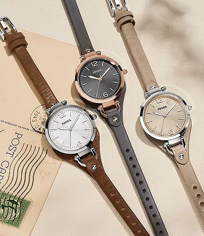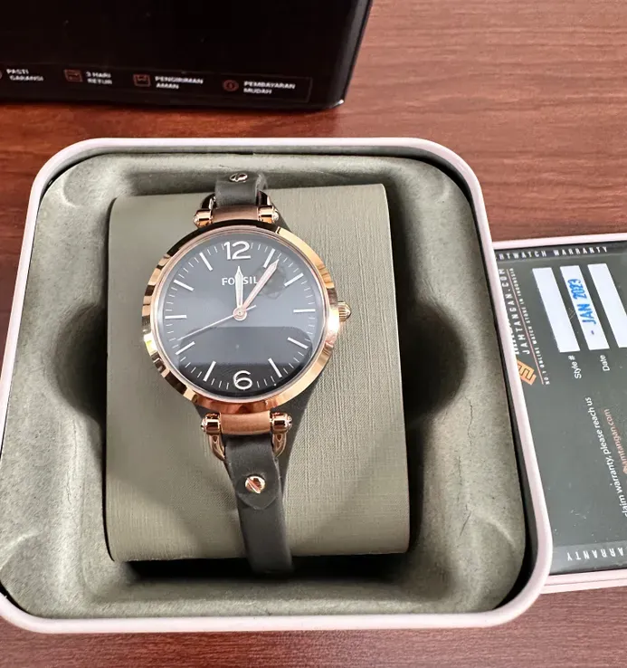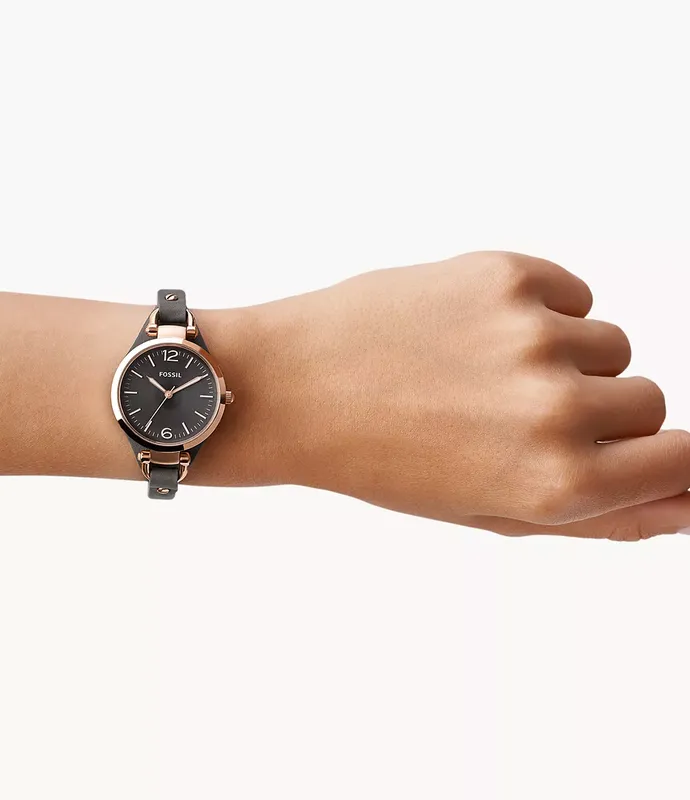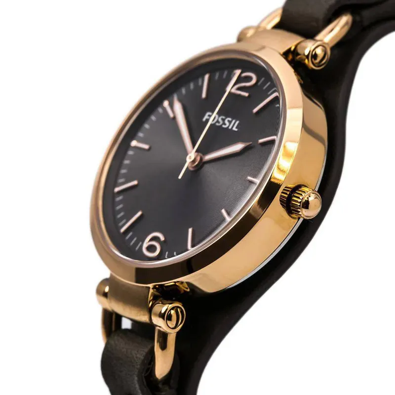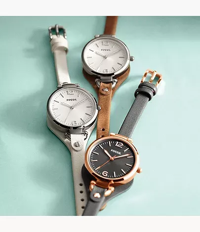 ES3077 שעון פוסיל לנשים אופנתי | דגם ברצועת עור מיוחדת | דגם רוז גולד בלוח מיוחד | שנתיים אחריות | Fossil Leather Georgia Analog Grey Dial Women's Watch - Es3077