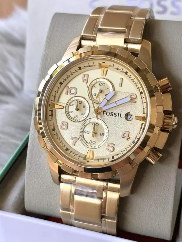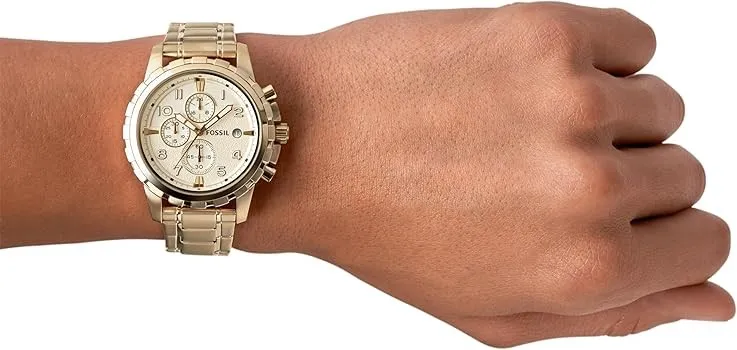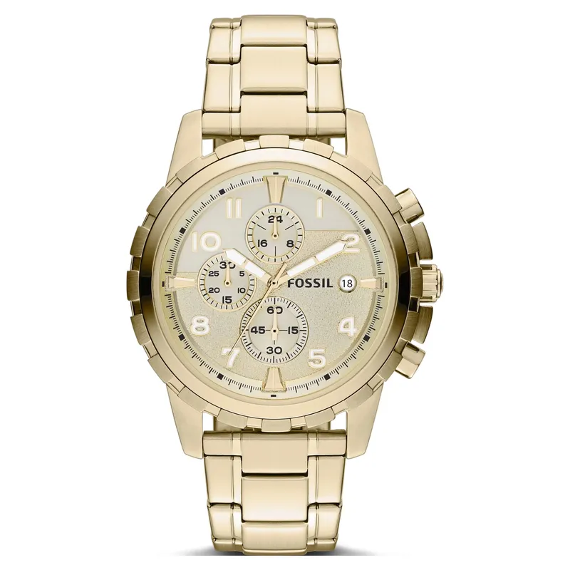 FS4867IE שעון ספורטיבי כרונוגרף לגברים של פוסיל | דגם זהב בלוח זהב כולל תאריכון | שנתיים אחריות | Fossil Dean FS4867 Wrist Watch for Men