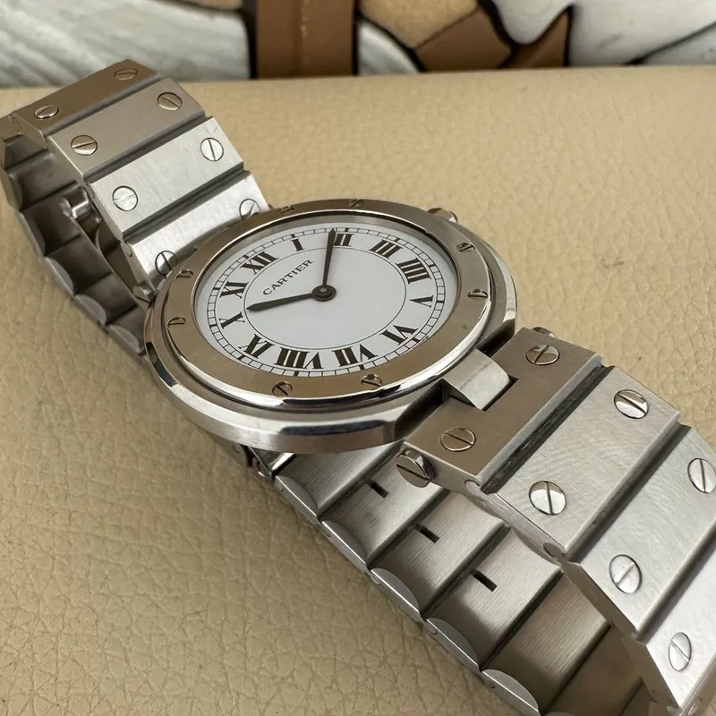 8192 שעון קרטייה סנטוס ונדום לנשים | שעון יד 2 עם כל הספרים | לוח רומי לבן | שנה אחריות | Cartier Santos Ronde Vendome in steel with steel bracelet, ladies 8192