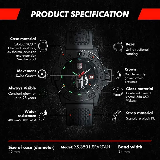 XS.3501.SPARTAN שעון לומינוקס לגברים במהדורה מוגבלת ל ספרטן | דגם ברצועת ספורט לוח מיוחד| מנגנון שווצרי | מלאי מוגבל | שנתיים אחריות | Luminox Men's Spartan 45mm Quartz Watch XS.3501.SPARTAN