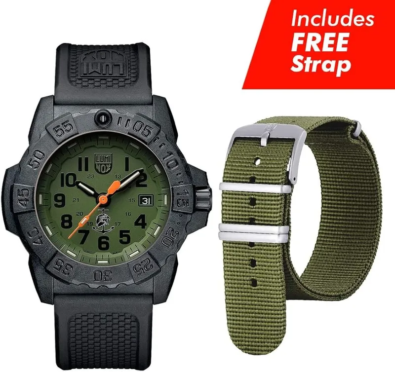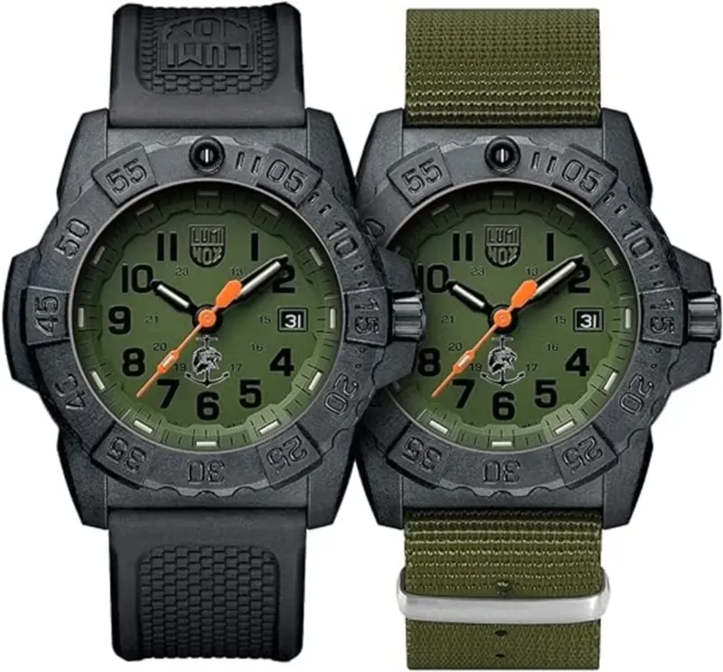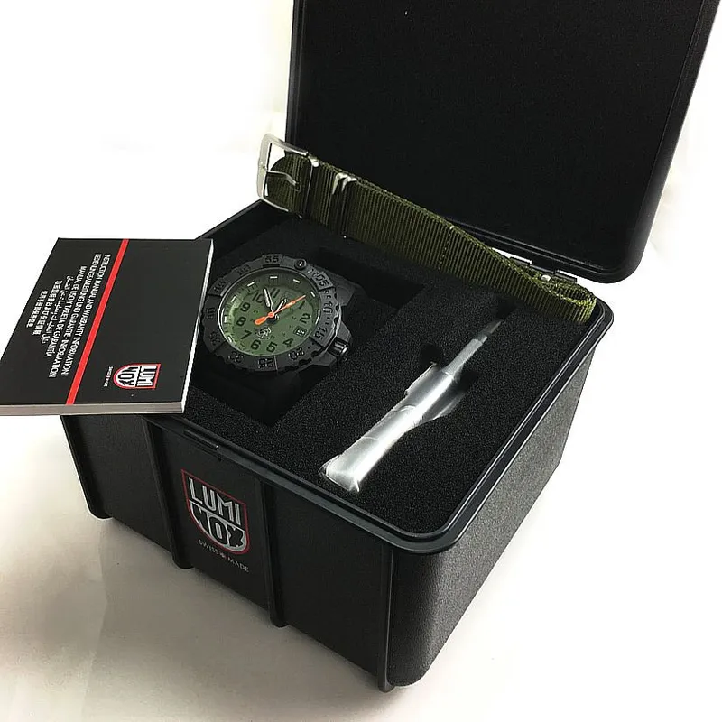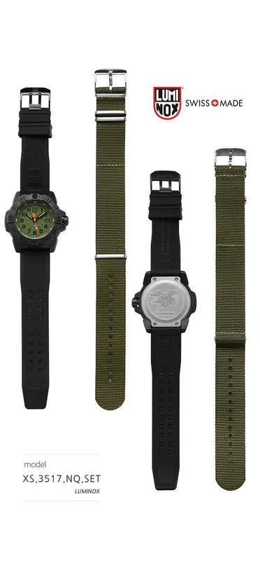 XS.3517.NQ.SET סט מארז מיוחד ללוחמים של לומינוקס שוויץ | דגם קרבון חזק וקל עם 2 רצועות להחלפה מהירה | לוח זרחני | מלאי מוגבל שנתיים אחריות | Luminox XS.3517.NQ.SET Navy Seal CARBONOX 45mm
