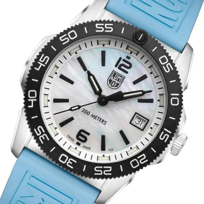 XS.3124M שעון צלילה של לומינוקס | דגם בלוח פנינה רצועת סיליקון תכלת | מלאי מוגבל | שנתיים אחריות | Luminox XS.3124M Pacific Diver Ripple Rubber Quartz Sapphire