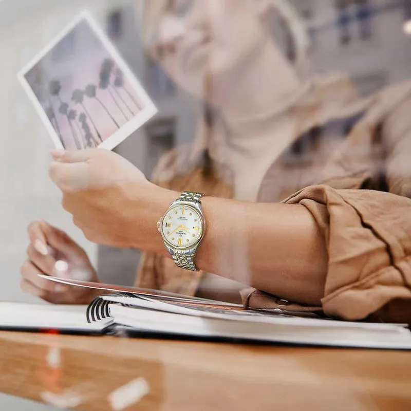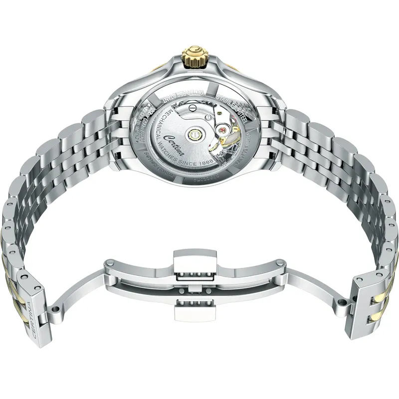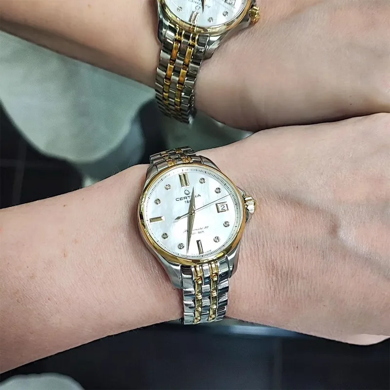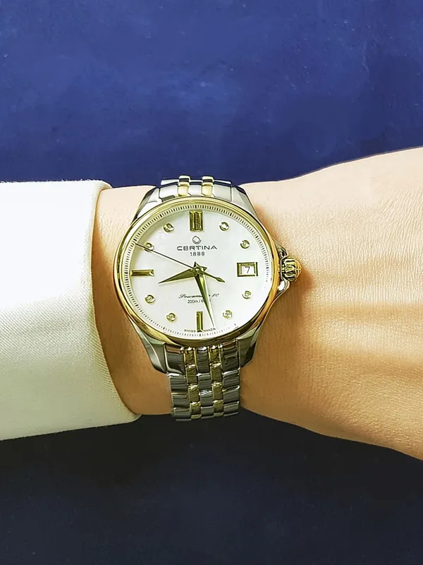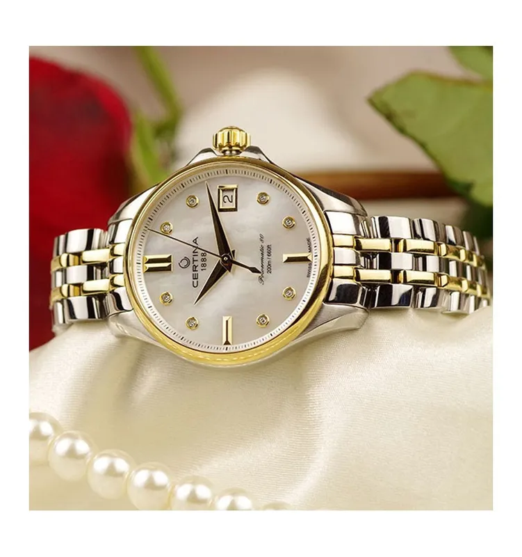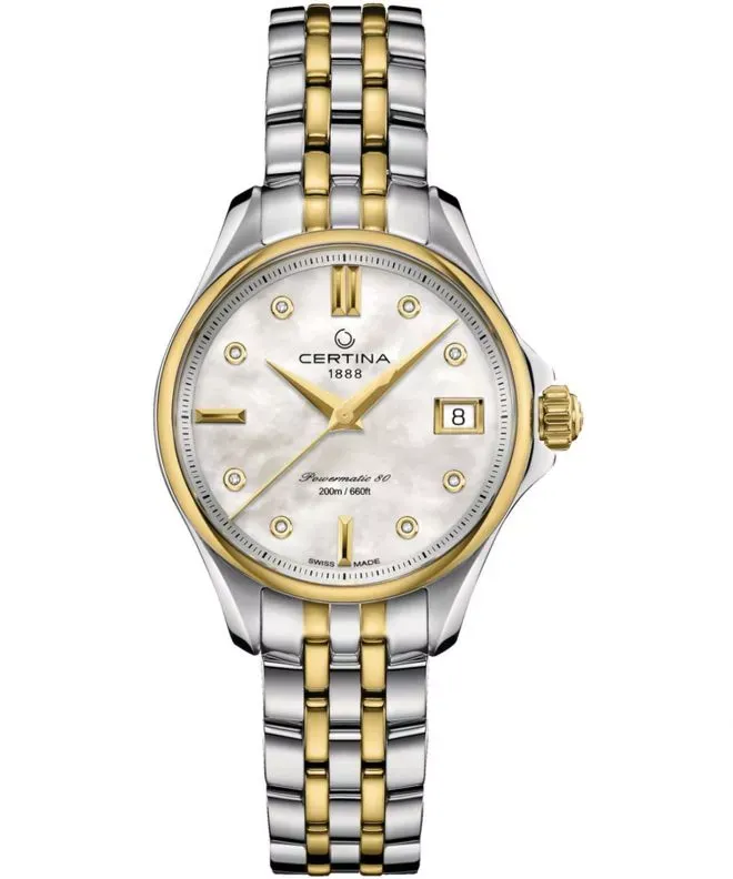 C032.207.22.116.00 שעון סרטינה מהדגמים החדשים לנשים | דגם משולב זהב בלוח פנינה משובץ 12 יהלומים | מנגנון אוטומטי | 5 שנים אחריות | Certina DS Action Lady Powermatic 80 C0322072211600