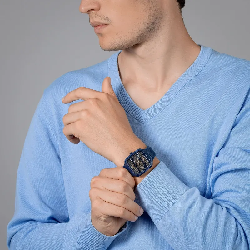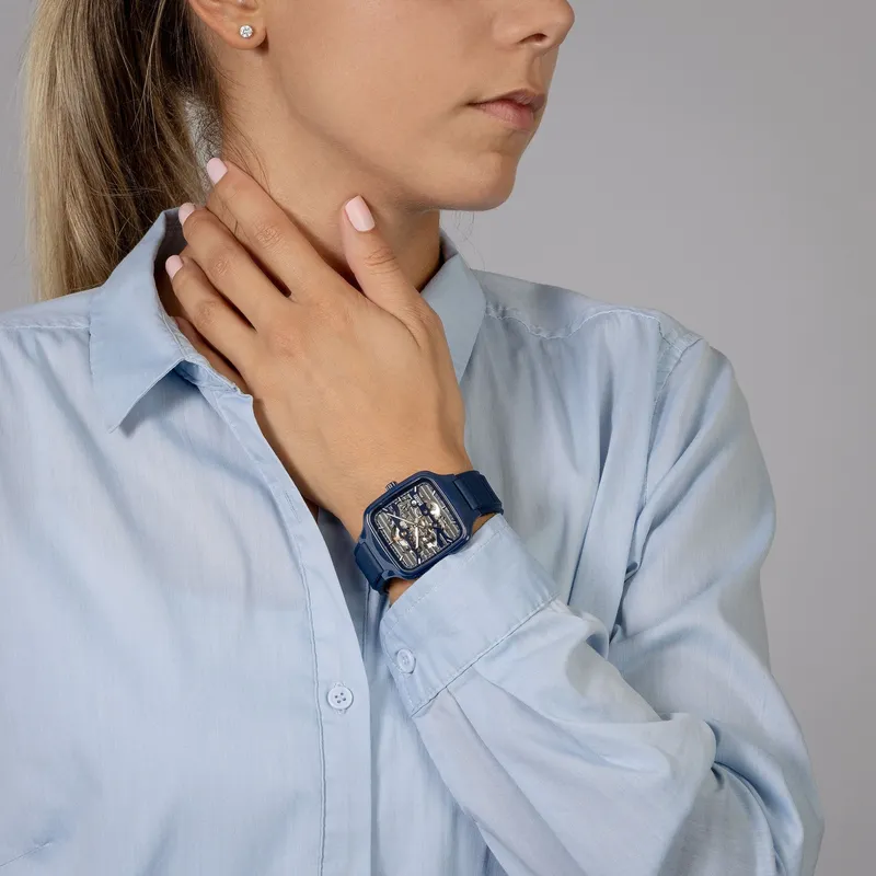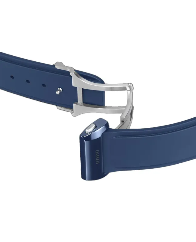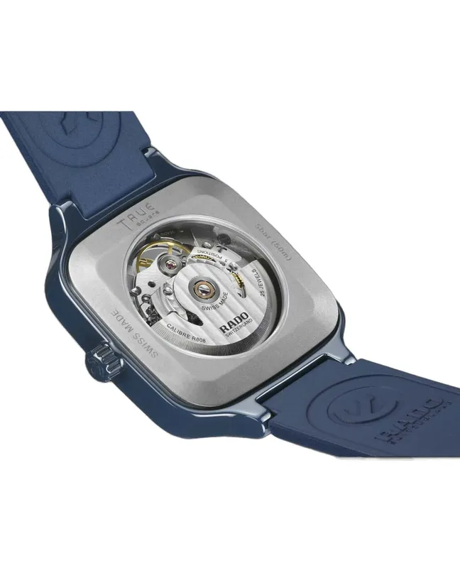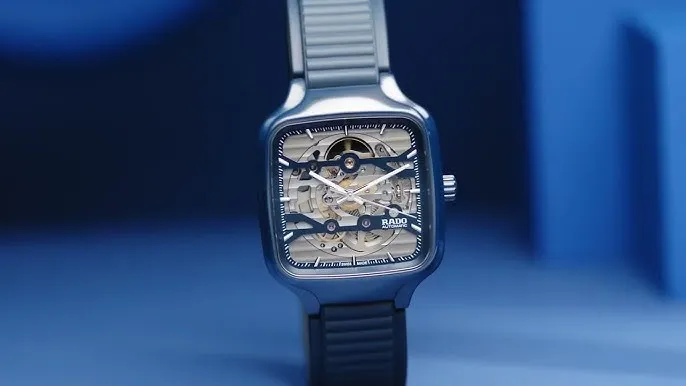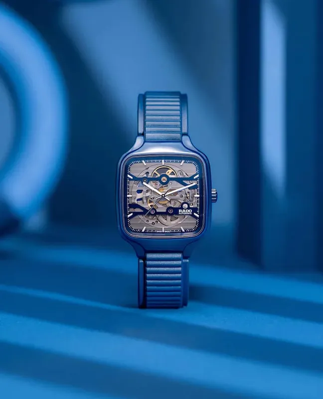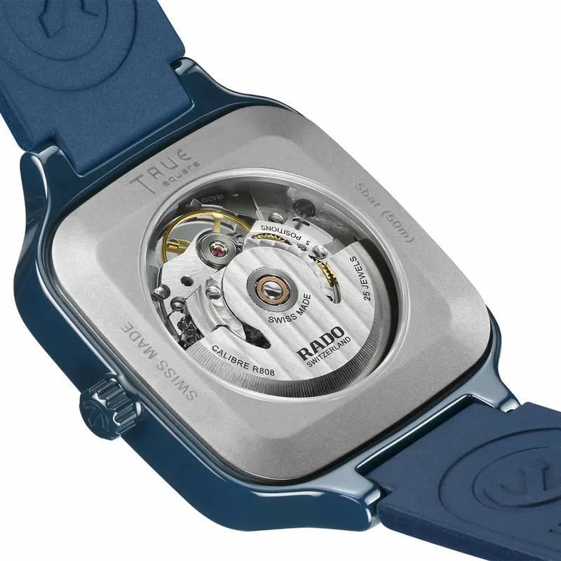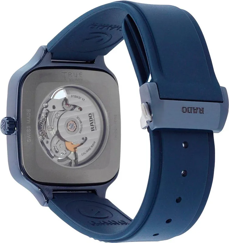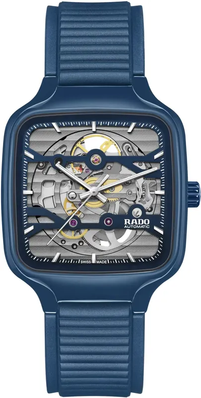 R-61783120 שעון ראדו ספורט חדש יוניסקס כחול ברצועת סיליקון כחולה | קייס קרמי כחול | 5 שנים אחריות יבואן רשמי - פלאנט | Rado R27178205 True Square Ceramic 38mm Skeleton