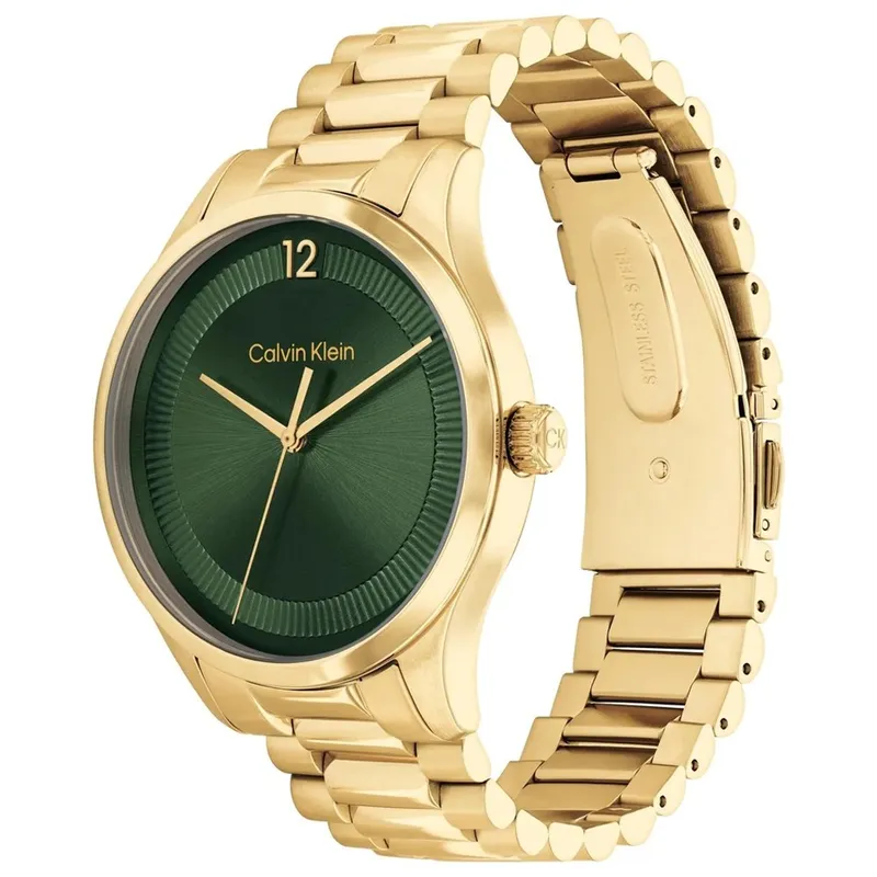 25200229 שעון זהב בלוח ירוק מיוחד ואופנתי של קלווין קליין | דגם יוניסקס 40 מ''מ | סדרה חדשה במלאי מוגבל שנתיים אחריות | Buy Calvin Klein Iconic unisex Watch 25200229