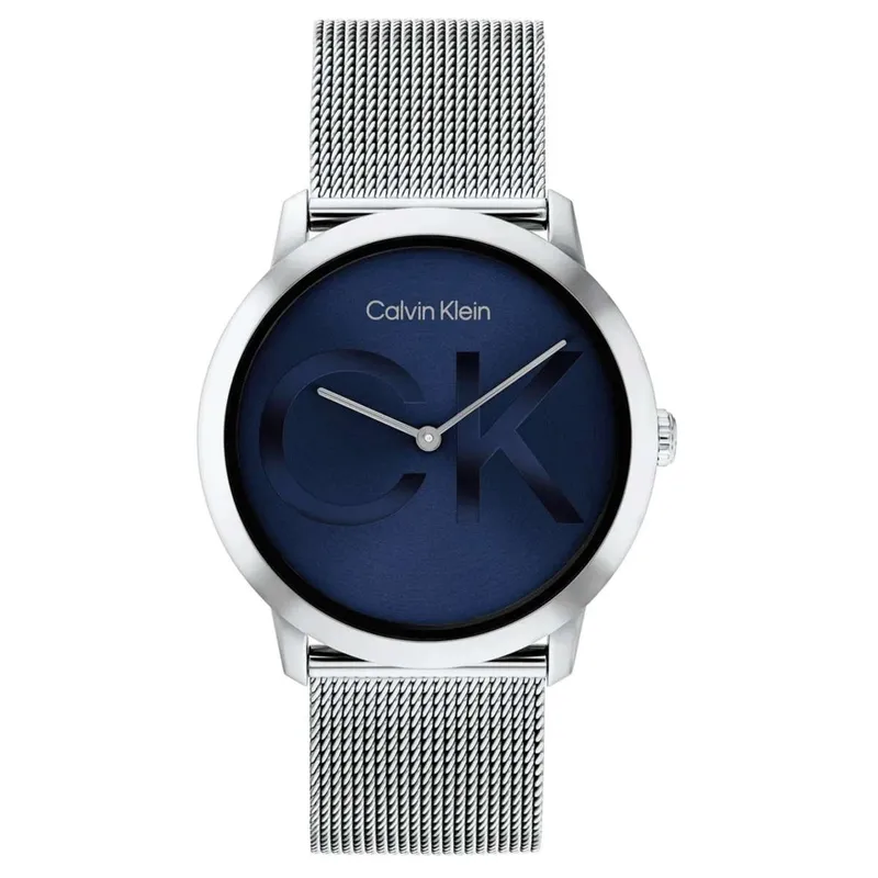 25300010 שעון יד קלווין קליין לגברים | דגם חדש ברצועת רשת אופנתית לוח כחול ממותג | שנתיים אחריות | Calvin Klein Ikonix 40mm Quartz Watch 25300010