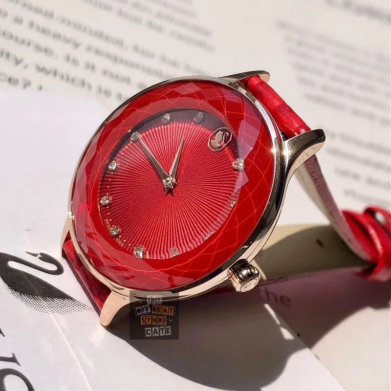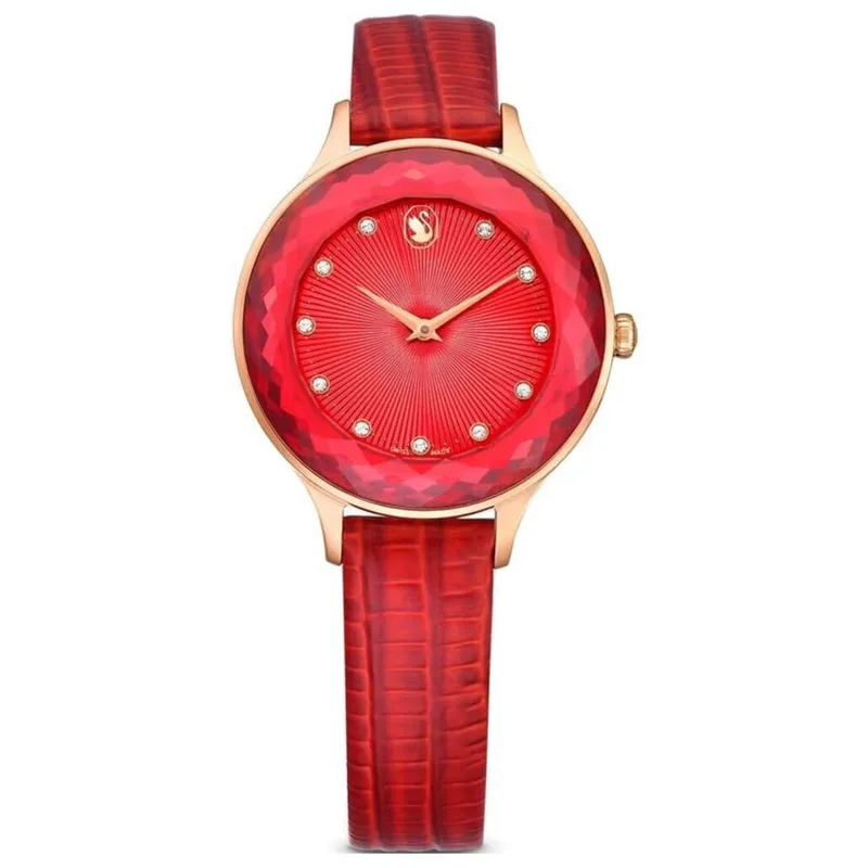 5650002 שעון יד סברובסקי לאישה בצבע אדום | באזל זהב | לוח פסים | שנתיים אחריות | מלאי מוגבל Swarovski Watch Octea Nova 33mm Red 5650002
