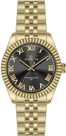 47405 שעון יד זהב לגברים של אינוויקטה | לוח שחור רומי | רצועת פלדת אל חלד | 50 מטר | שנתיים אחריות | Invicta Men's Watch - Specialty Black Dial Yellow Gold Steel Bracelet Quartz | 47405