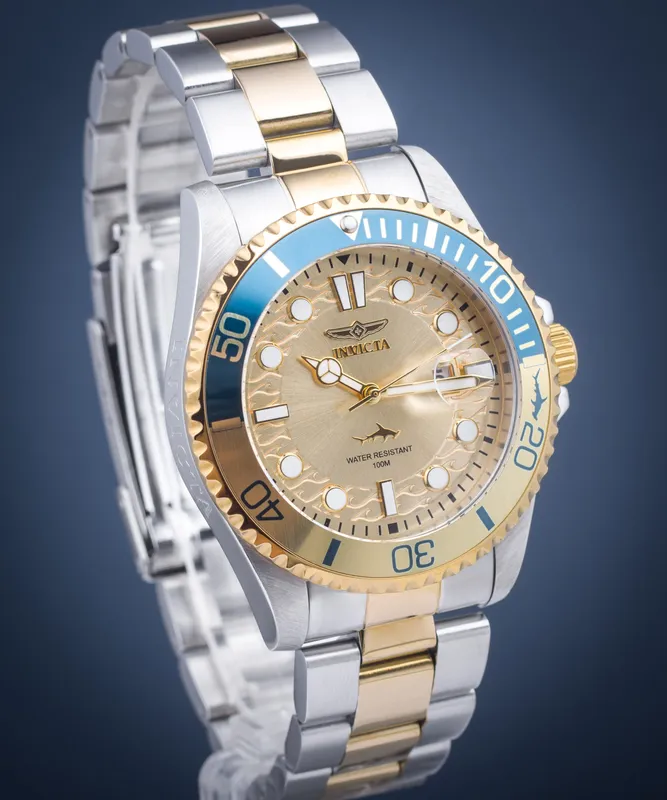 30948 שעון יד אינווקטה דגם משולב זהב בלוח זהב גלים עם תאריכון | שנתיים אחריות | מלאי מוגבל | Invicta Pro Diver 30948 Men's Quartz Watch - 43mm