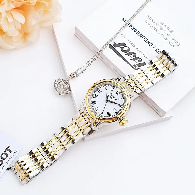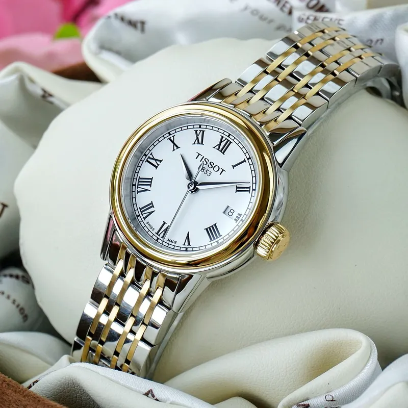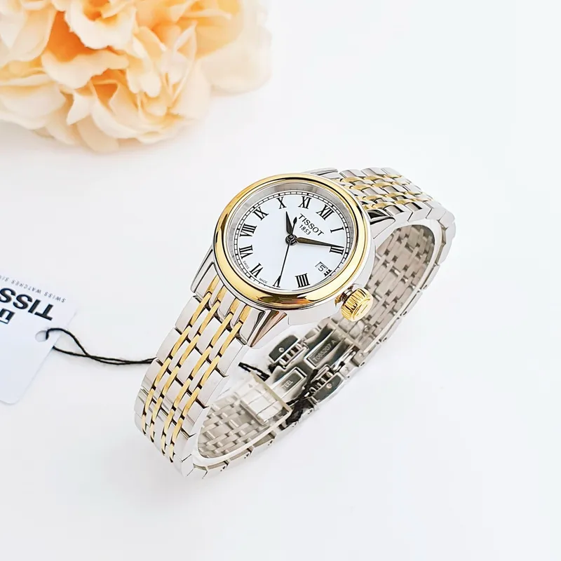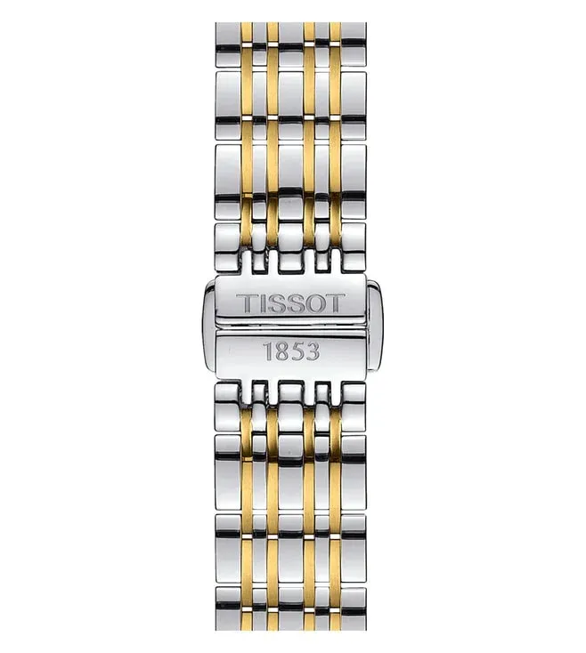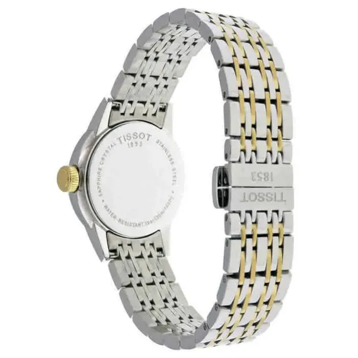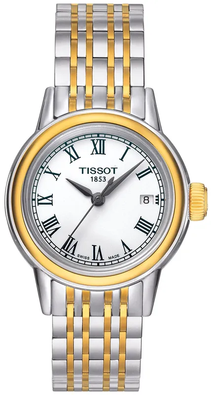 T085.210.22.013.00 שעון יד של טיסו לאישה | דגם מסדרת קרסון משולב זהב בלוח רומי לבן | שעון אלגנטי שווצרי יוקרתי עם שנתיים אחריות | Tissot Carson White Dial Two-tone Ladies Watch T0852102201300