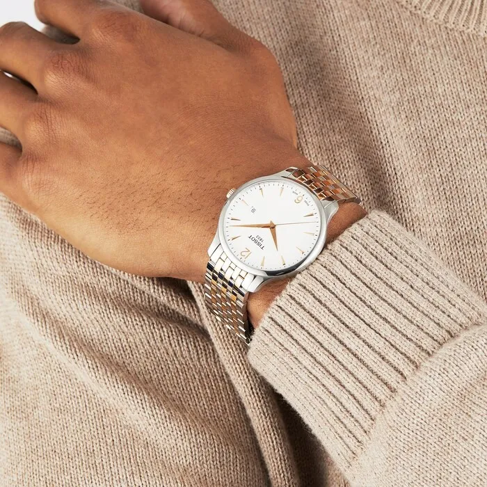 T063.610.22.037.01 שעון טיסו דק לגברים | דגם מסדרת טרדישן משולב זהב רוז | שעון אלגנטי יוקרתי שווצרי כולל שנתיים אחריות | Tissot T-Classic 42mm Mens Watch T0636102203701