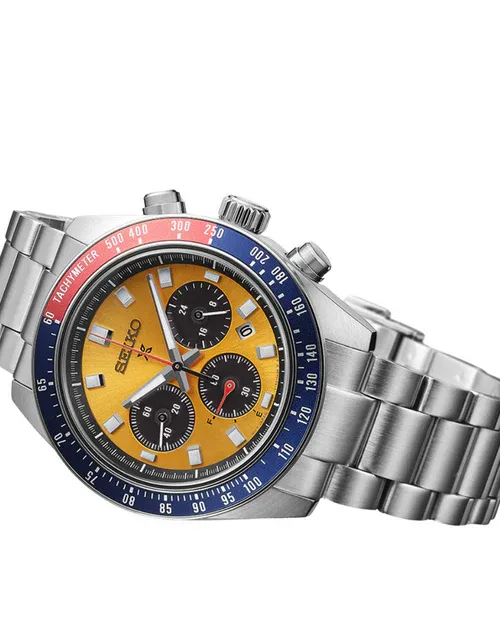 SSC947P1 שעון סייקו דגם לגברים מסדרת פרוספקס במחווה ויליאם פוג | לוח צהוב כרונוגרף סולארי | מלאי מוגבל | אחריות יבואן רשמי | Seiko SSC947P1 Prospex Speedtimer William Pogue