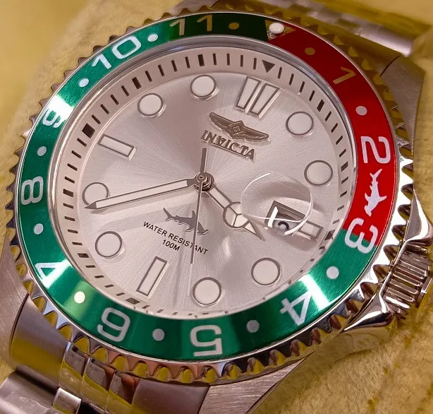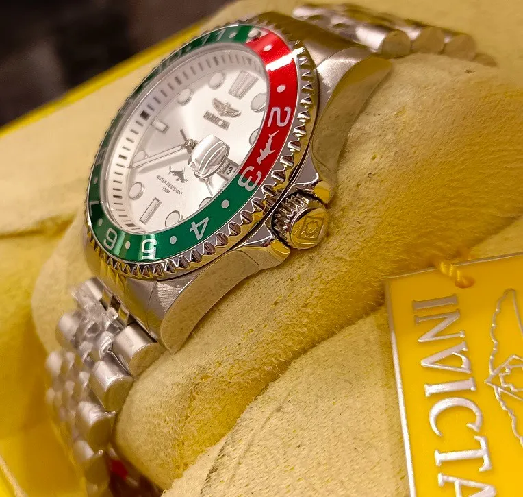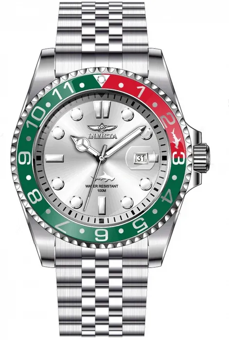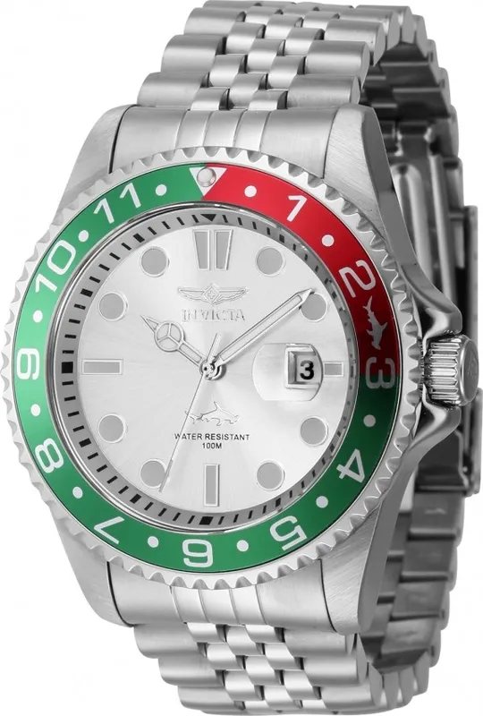 43750 שעון אינווקטה לגברים באזל ירוק אדום | דגם ספורטיבי | מנגנון יפני איכותי כולל שנתיים אחריות | Invicta 43750 Pro Diver watch has a 43 mm steel stainless steel case