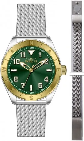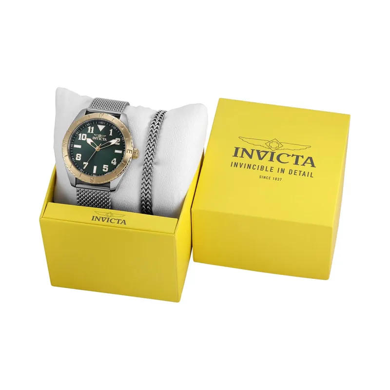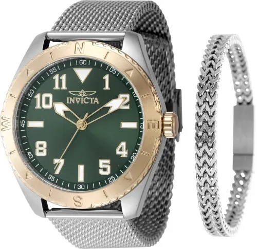 48289 שעון אינווקטה לגברים | לוח ירוק זרחני | באזל זהב | רצועת רשת אופנתית | מלאי מוגבל עם שנתיים אחריות |צמיד מתנה במארז | Invicta Watch Mens Specialty 45mm Quartz - 48289