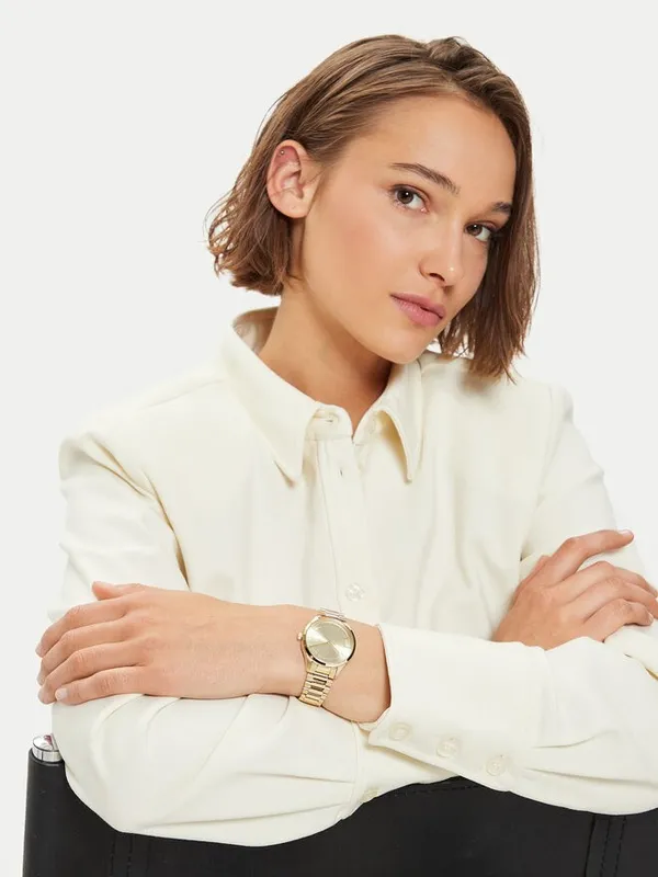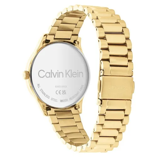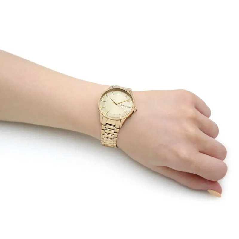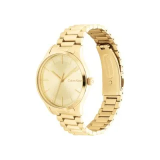 25200043 שעון קלווין קליין לנשים | דגם מהסדרה החדשה | לוח ורצועה זהב | שנתיים אחריות | Calvin Klein 25200043 Logo Gold-Tone Bracelet Watch