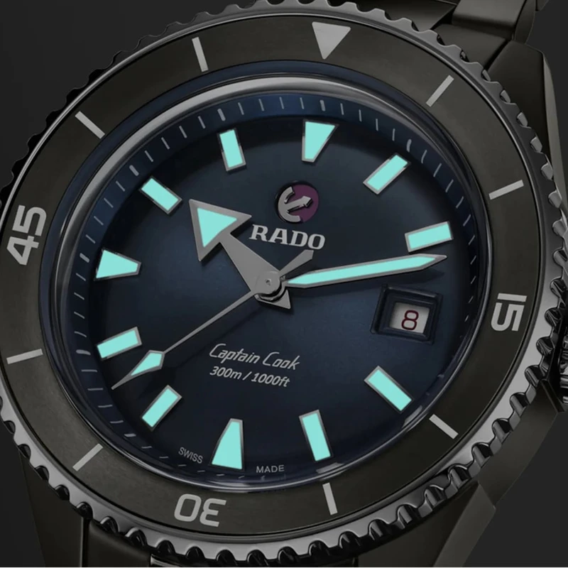 R-61443020 שעון ראדו יבואן רשמי מסדרת קפטן קוק | דגם בצבע פלאמה מיוחד עם לוח כחול זרחני יחודי | 5 שנים אחריות | 300 מטר Rado Captain Cook Automatic Watch | R32144202