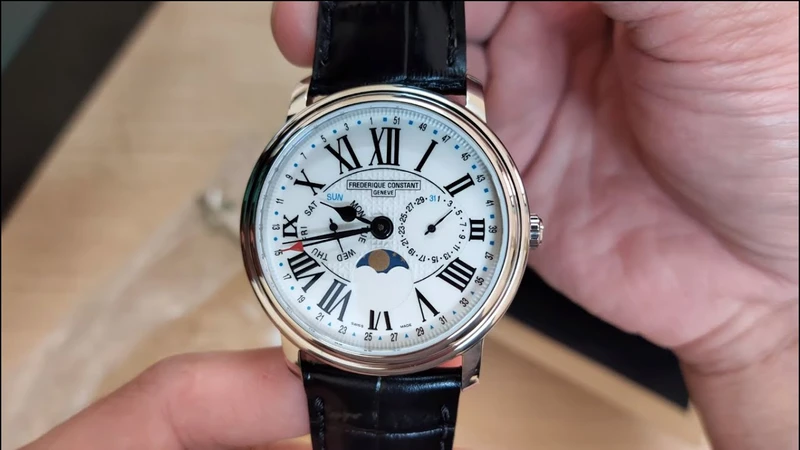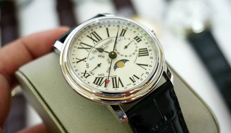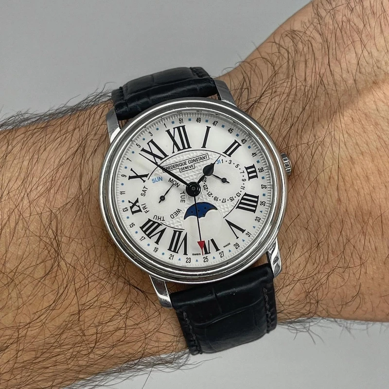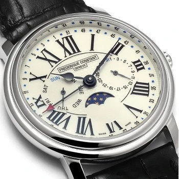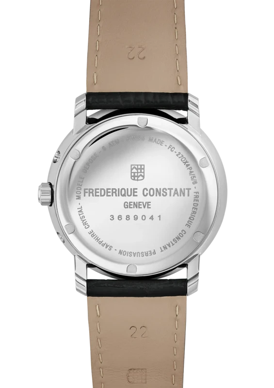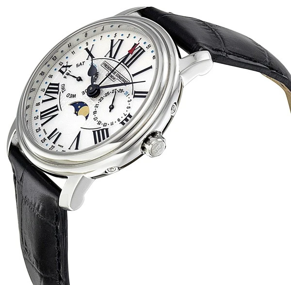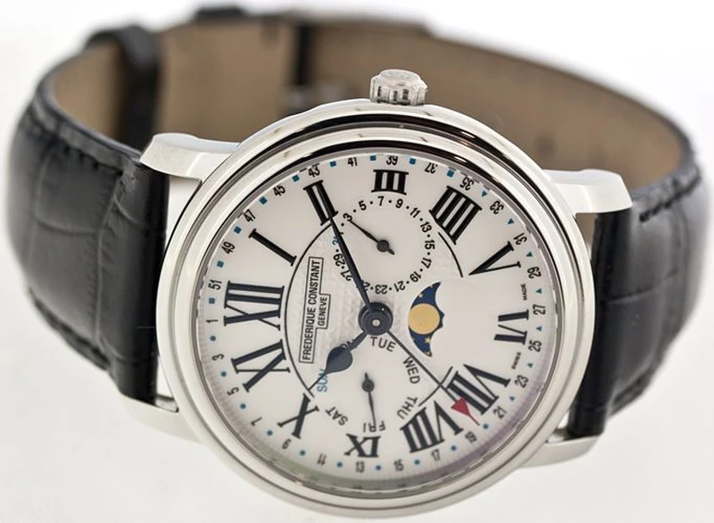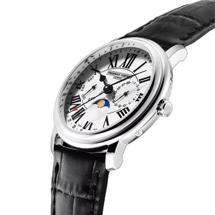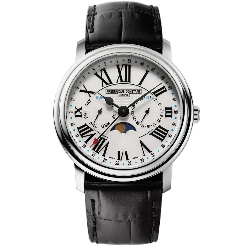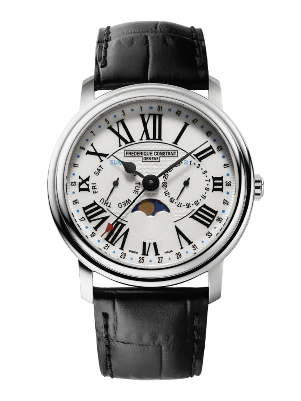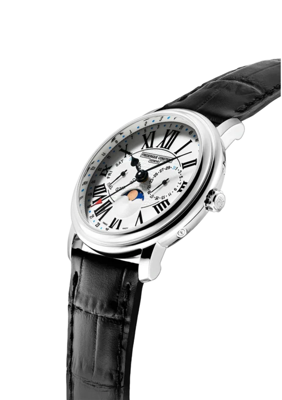 FC-270M4P6 שעון יוקרה של פרדריק קונסטנט לגברים מסדרת ביזניס טיימר | דגם בלוח רומי עם רצועת עור | תצוגת ירח ותאריכון מלאי מוגבל שנתיים אחריות | Frederique Constant Classics Business Timer FC-270M4P6