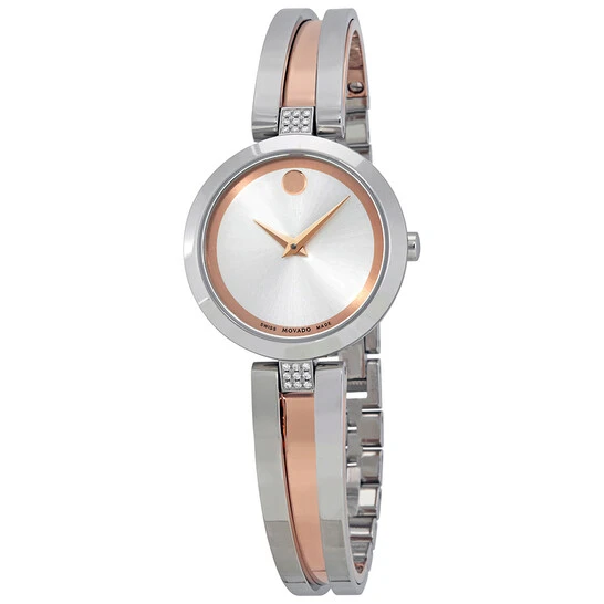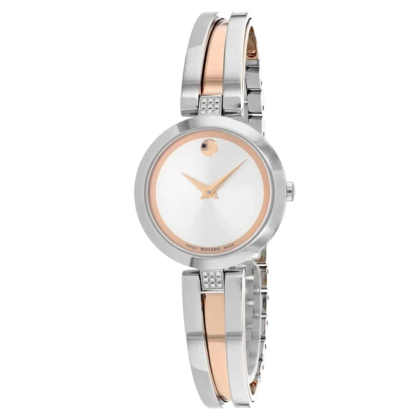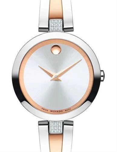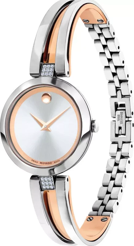 0607152 שעון יד יוקרתי אלגנטי ומיוחד של מובאדו שוויץ | דגם מושבץ 18 יהלומים ברצועה | דגם טוטון זהב רוז | מלאי מוגבל עם שנתיים אחריות | Aleena 2-Tone Bangle Diamonds 0607152 - Movado