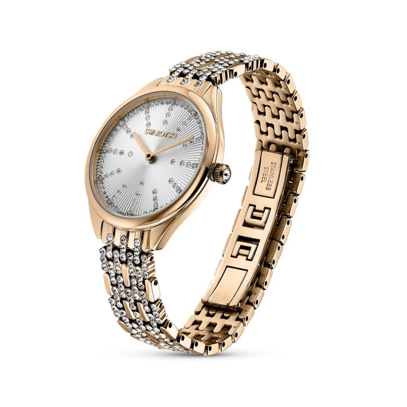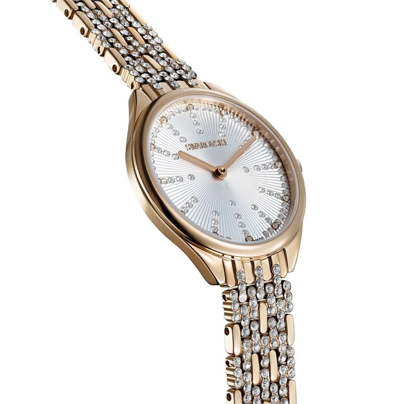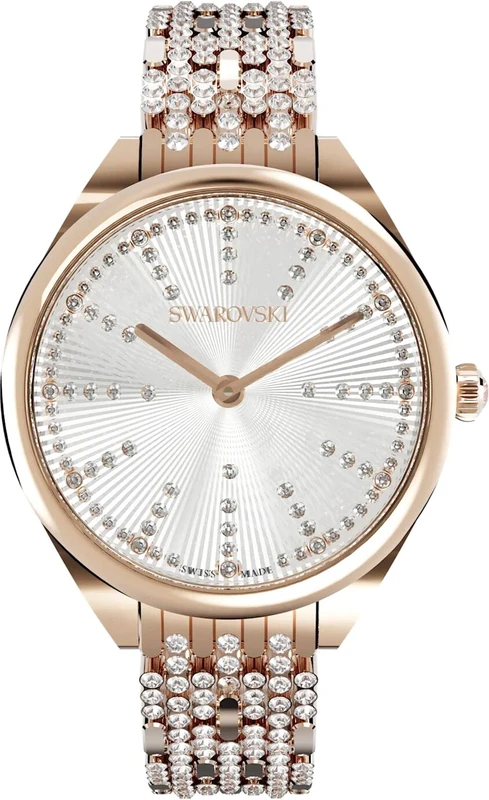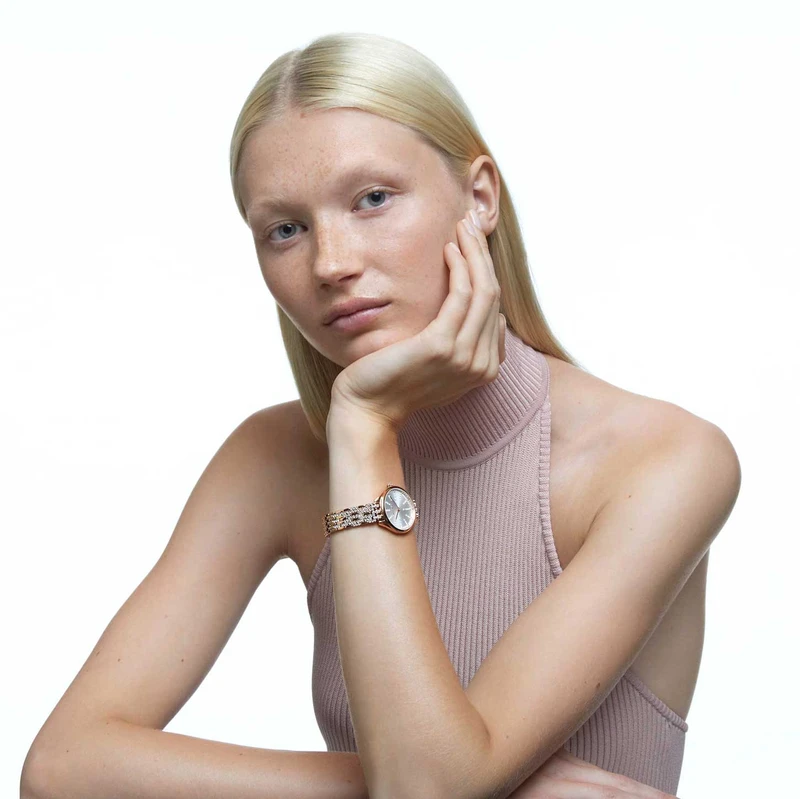 5610487 שעון סברובסקי לאישה | דגם רוז גולד משובץ ברצועה ובלוח | שעון אלגנטי | Swarovski Crystal Attract Watch Metal Bracelet, White, Rose-Gold Tone 5610487
