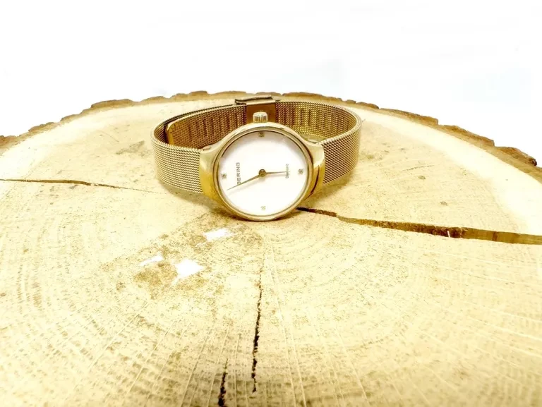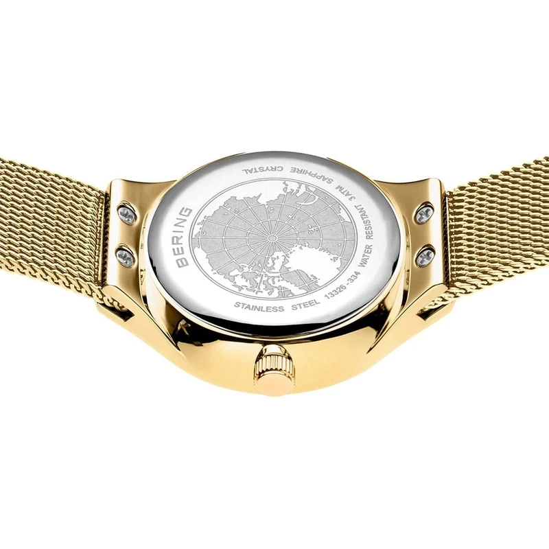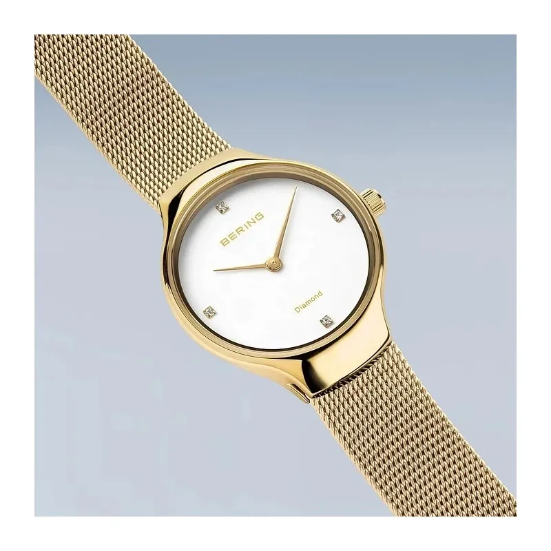 13326-334 עעון ברינג דגם חדש לאישה משובץ 4 יהלומים | לוח לבן ברצועת מאש אופנתית | זכוכית ספיר עם 3 שנים אחריות | 13326-334 · This model features a white dial with four diamond GOLD