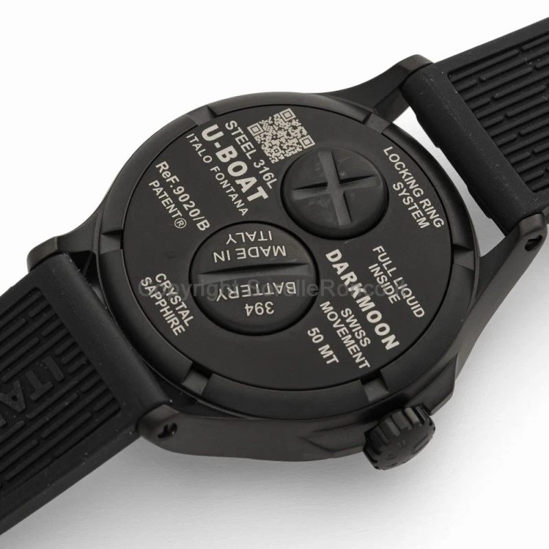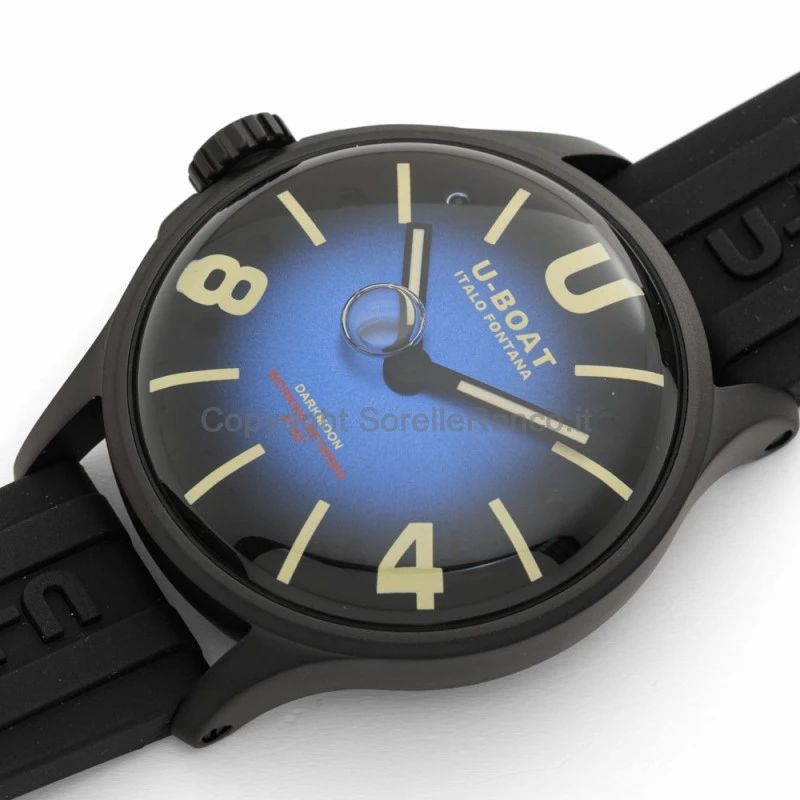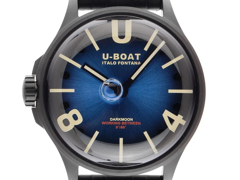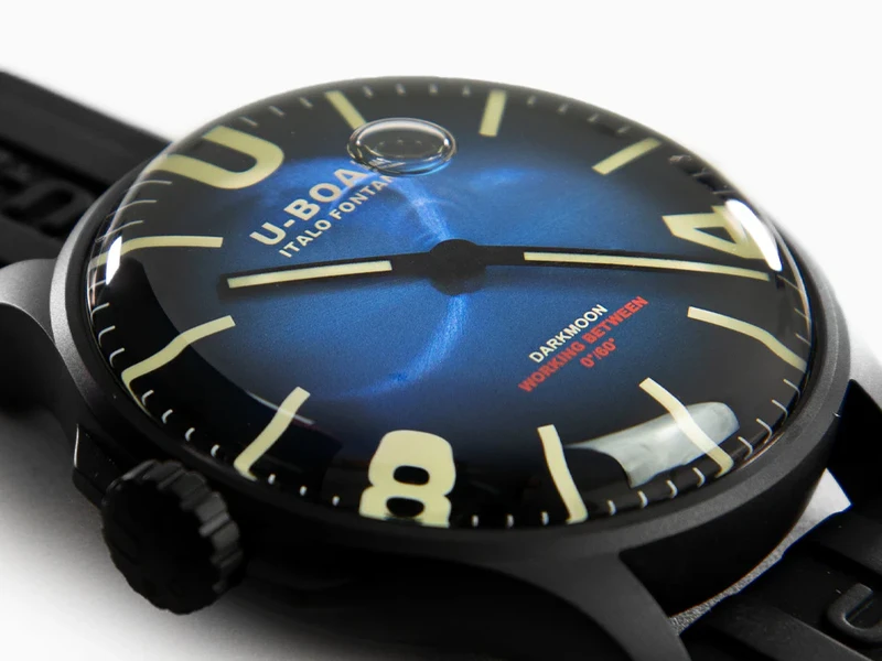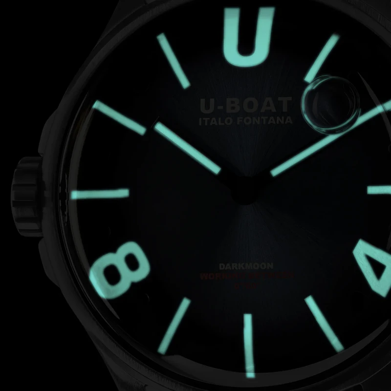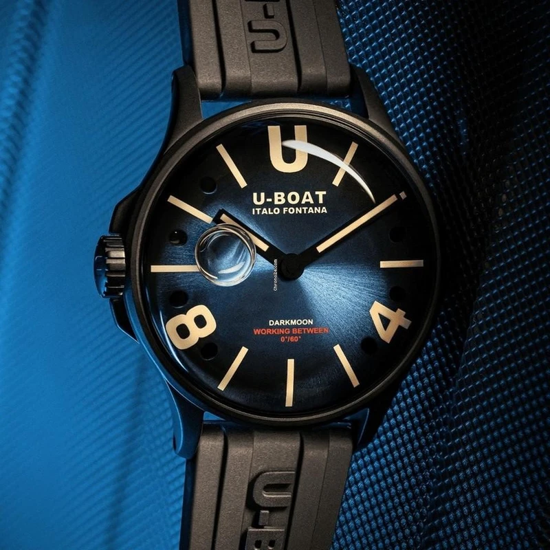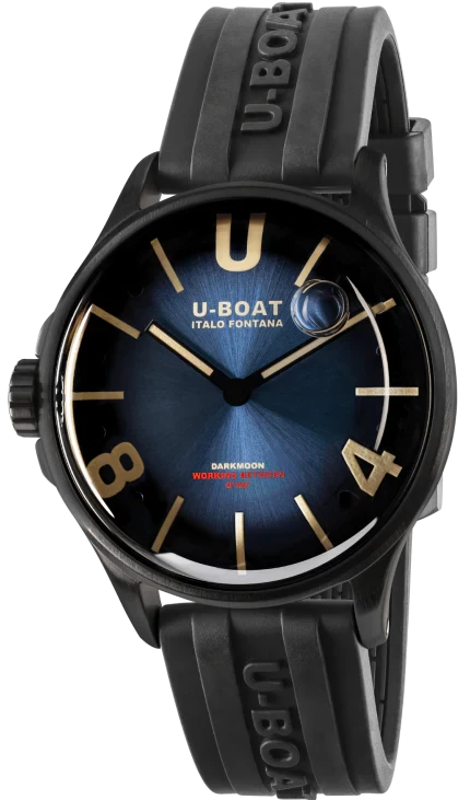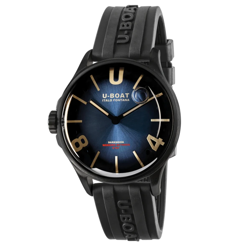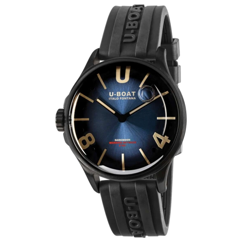 9020-B שעון יו בוט מיוחד לגברים | דגם עם שמן בלוח | זכוכית בלון ברצועת ספורט ממותגת בלוח כחול | שנתיים אחריות | U-Boat Men's Darkmoon 40mm Quartz Watch UB-9020-B