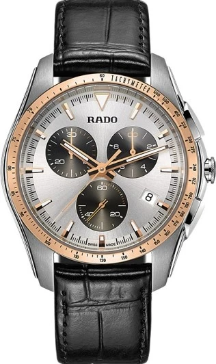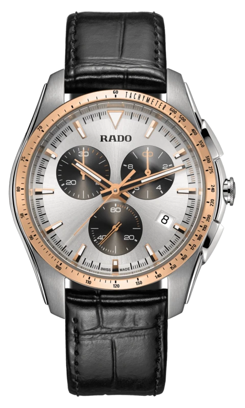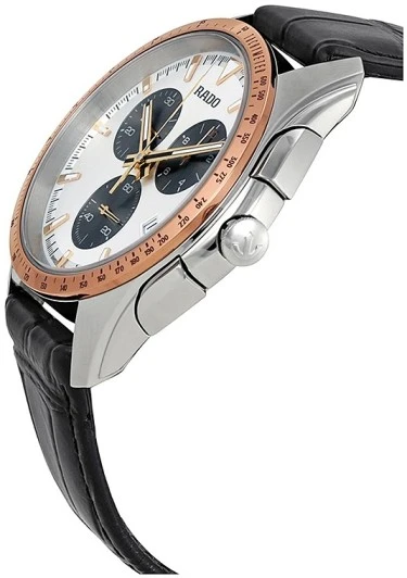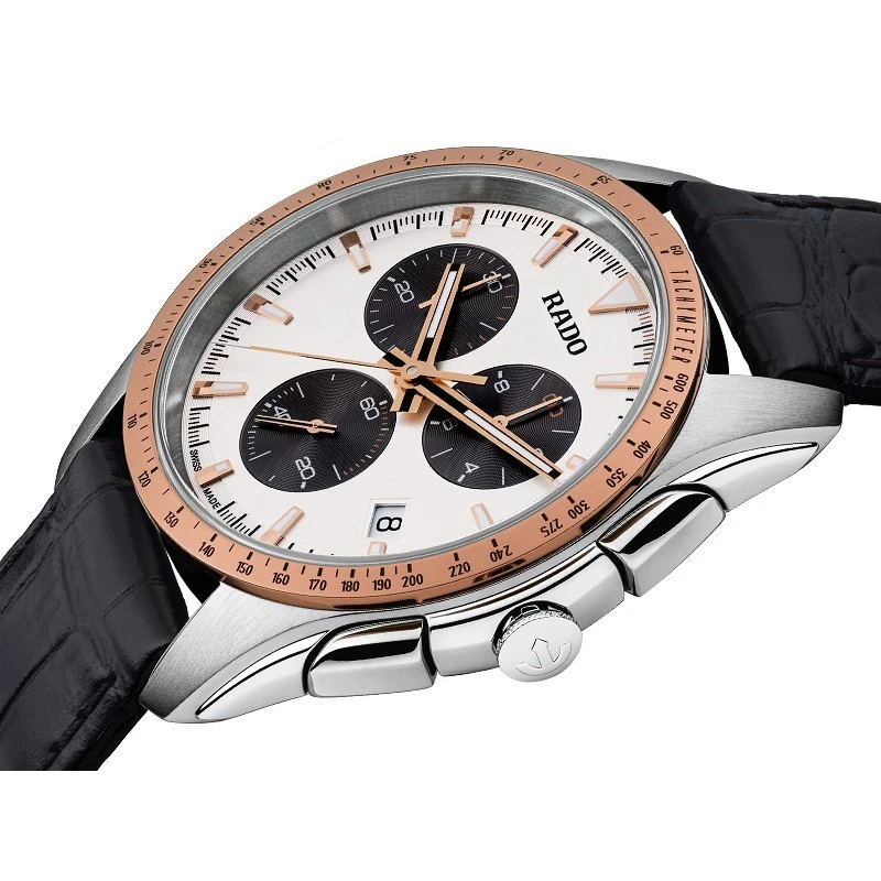 R-02593100 שעון ראדו יבואן רשמי לגברים מסדרת הייפרכרום כרונוגרף | באזל רוז גולד לוח פנדה | רצועת עור | שעון אלגנטי שווצרי איכותי עם 5 שנות אחריות | Rado Watch HyperChrome Chronograph R32259105 Watch