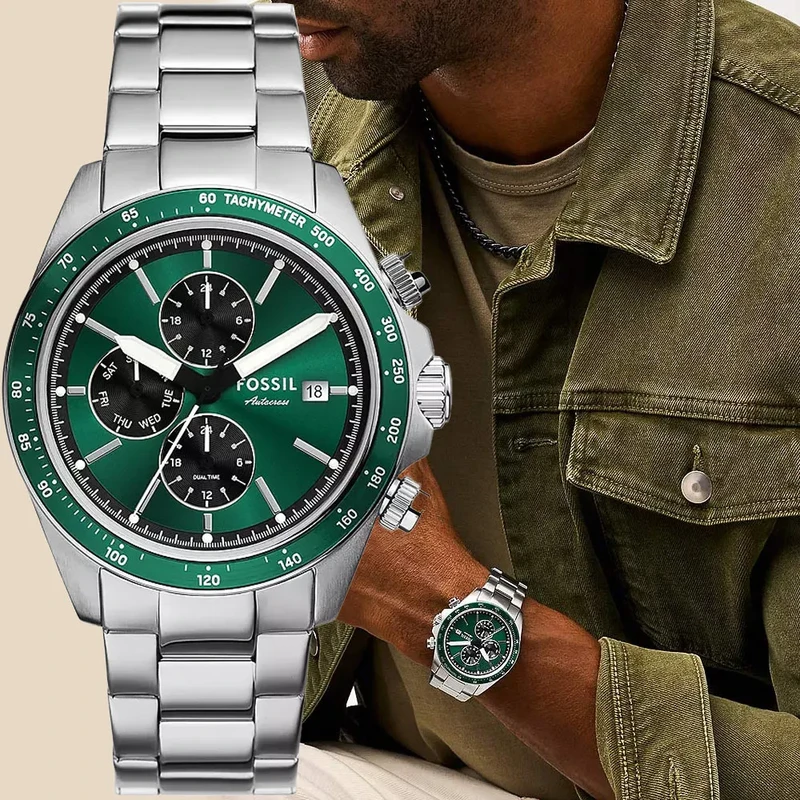 BQ2878שעון יד ספורטיבי לגברים דגם חדש | כרונוגרף בלוח ירוק | שעון אופנתי כולל שנתיים אחריות | Fossil BQ2878 Autocross Multifunction Stainless Steel Watch