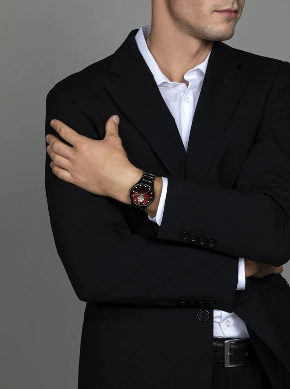 צבע לוח השעון : בורדו - סקלטון - שקוף משובץ