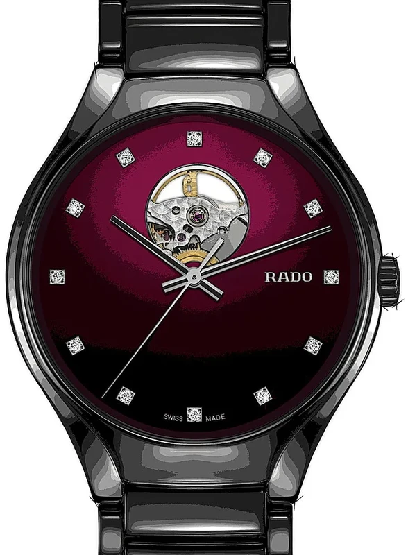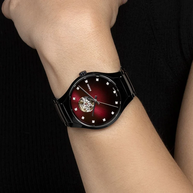 R-61073074 שעון ראדו יבואן רשמי מסדרת טרו סיקרט קרמיקה בלוח אדום מיוחד | משובץ 12 יהלומים עם מנגנון אוטומטי | Rado True Secret 40mm Mens Watch R27107742
