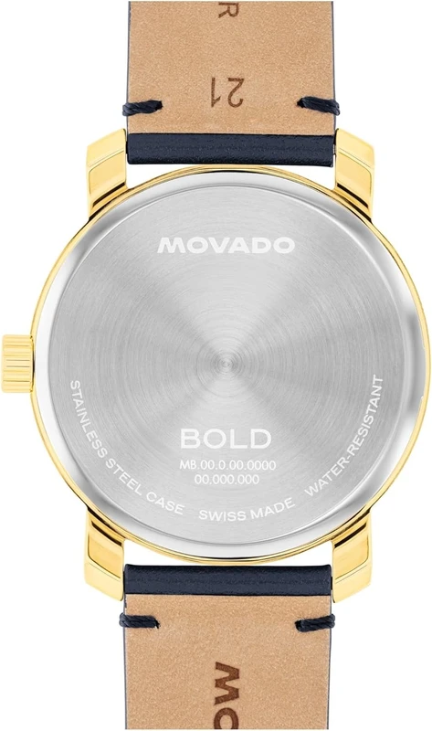 3601173 שעון יד מובאדו שוויץ מסדרת בולד לגברים | דגם זהב אלגנטי בלוח ורצועה כחולה | שנתיים אחריות | מלאי מוגבל | Movado Bold Access Men's Quartz Watch, Swiss Movement 3601173