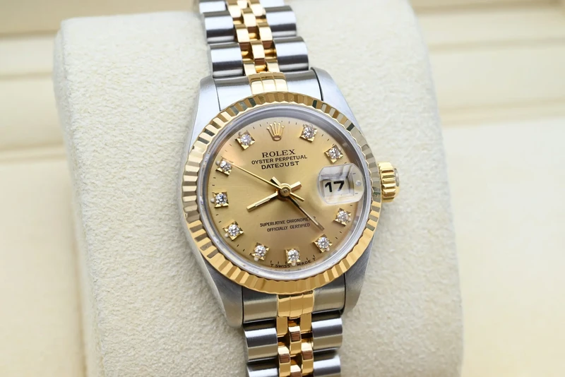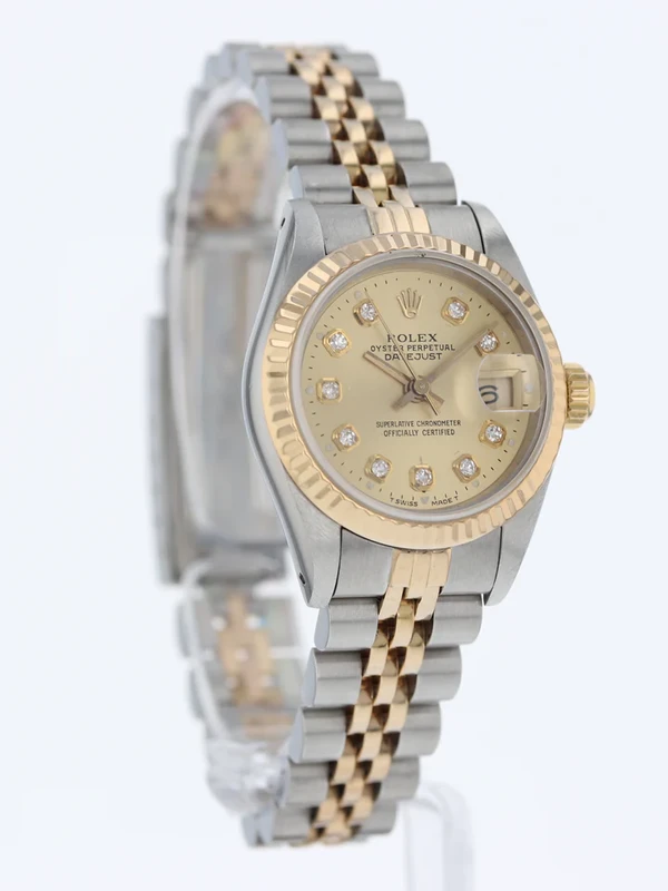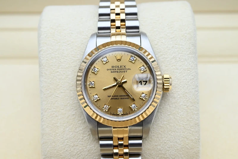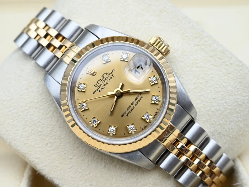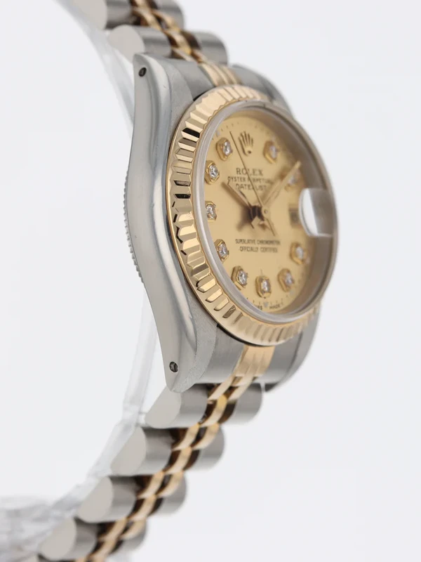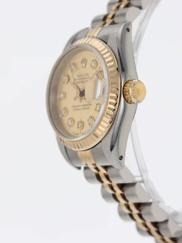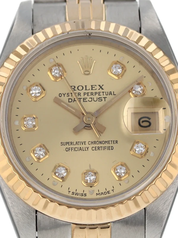 69173 שעון יד רולקס יד 2 לאישה | דגם דיג'אסט 26 מ''מ | לוח זהב 12 יהלומים מקורי כולל שנה אחריות | רצועת טוטון 18K | Rolex datejust 26mm lady two tone with diamond dial 69173