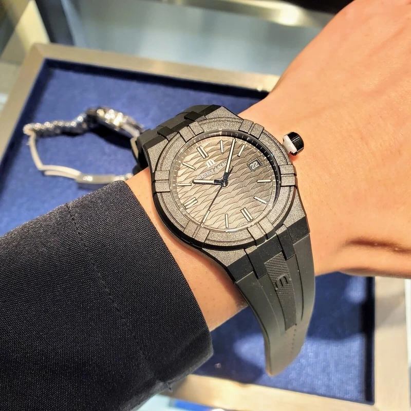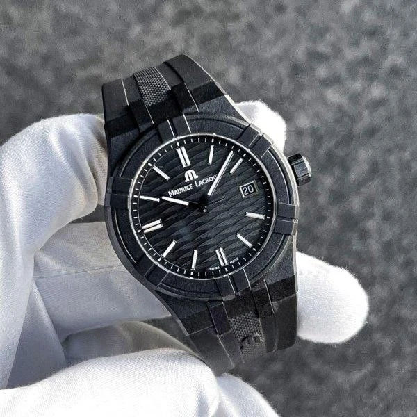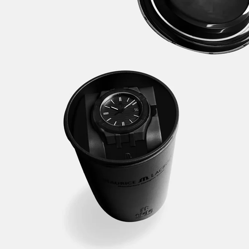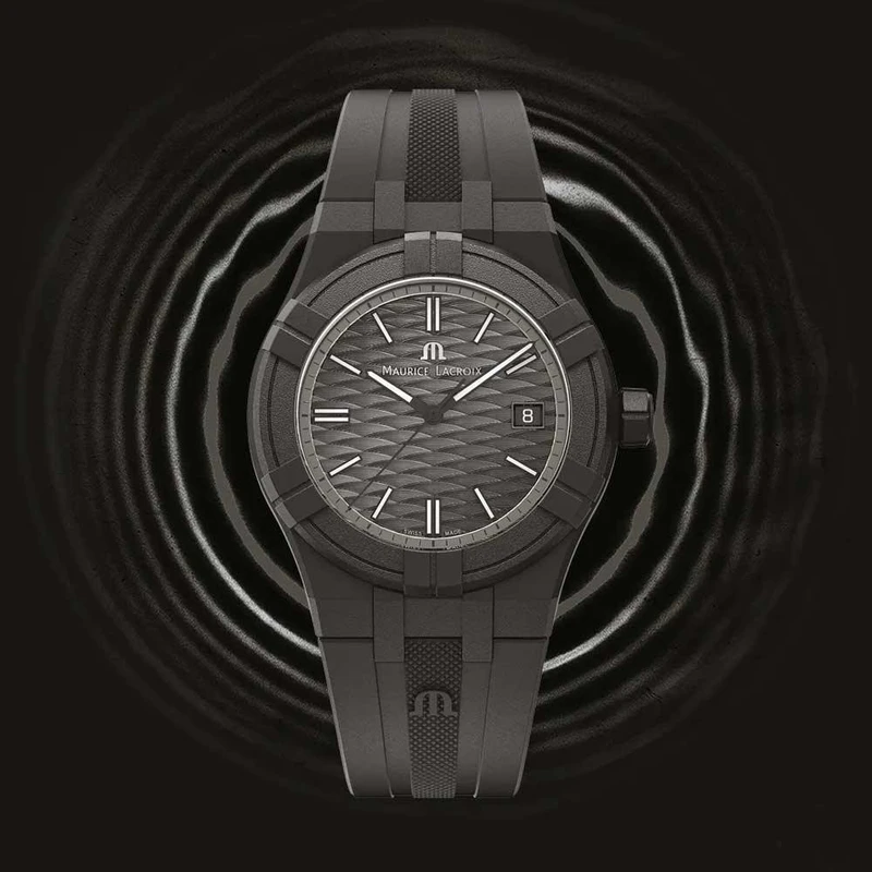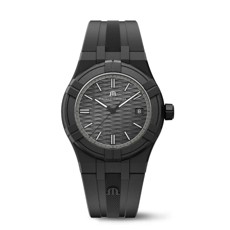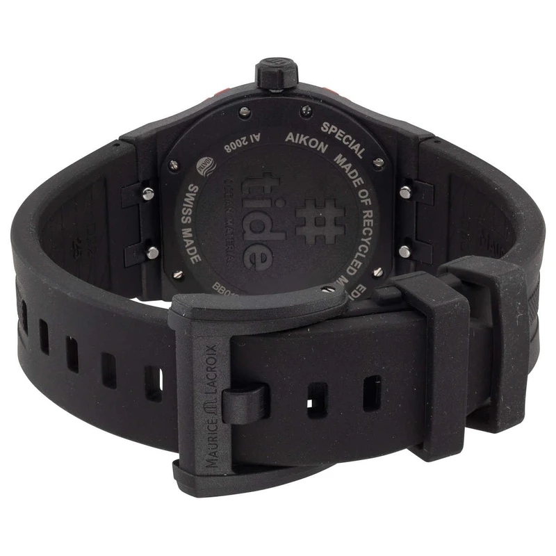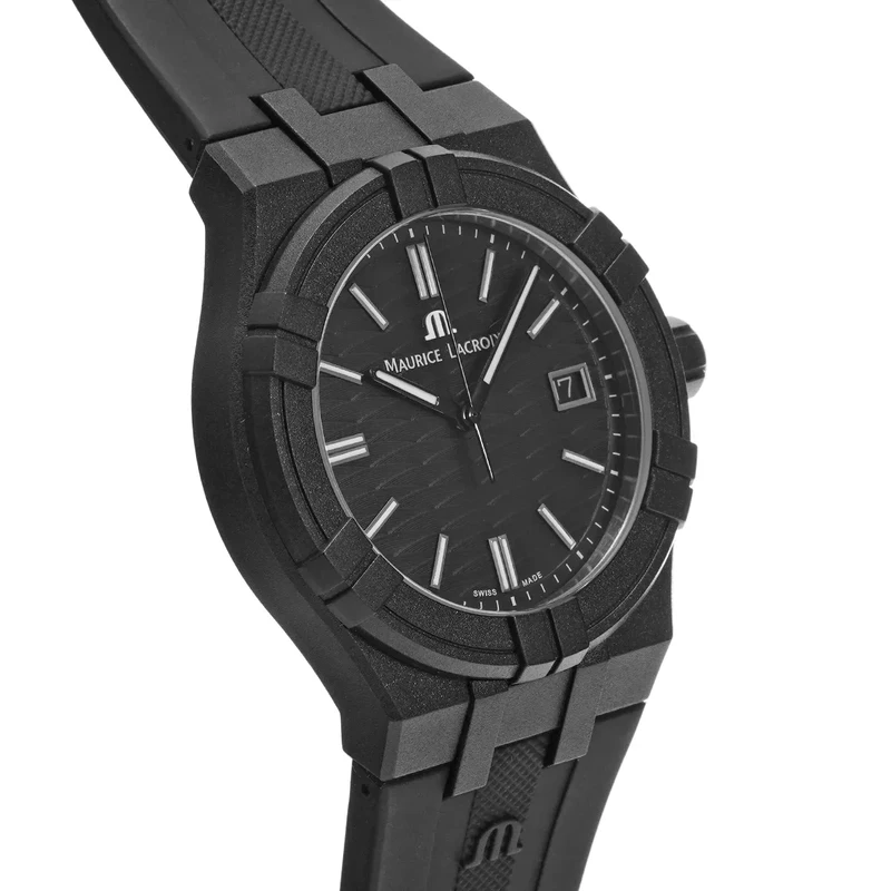 AI2008-00000-300-0 שעון שחור קלאסי יוקרתי של מוריס לקרואה לגברים | דגם שחור בלוח זרחני | רצועת ספורט זכוכית ספיר עם שנתיים אחריות | Maurice Lacroix Aikon Quartz Watch | AI2008-00000-300-0