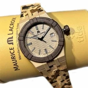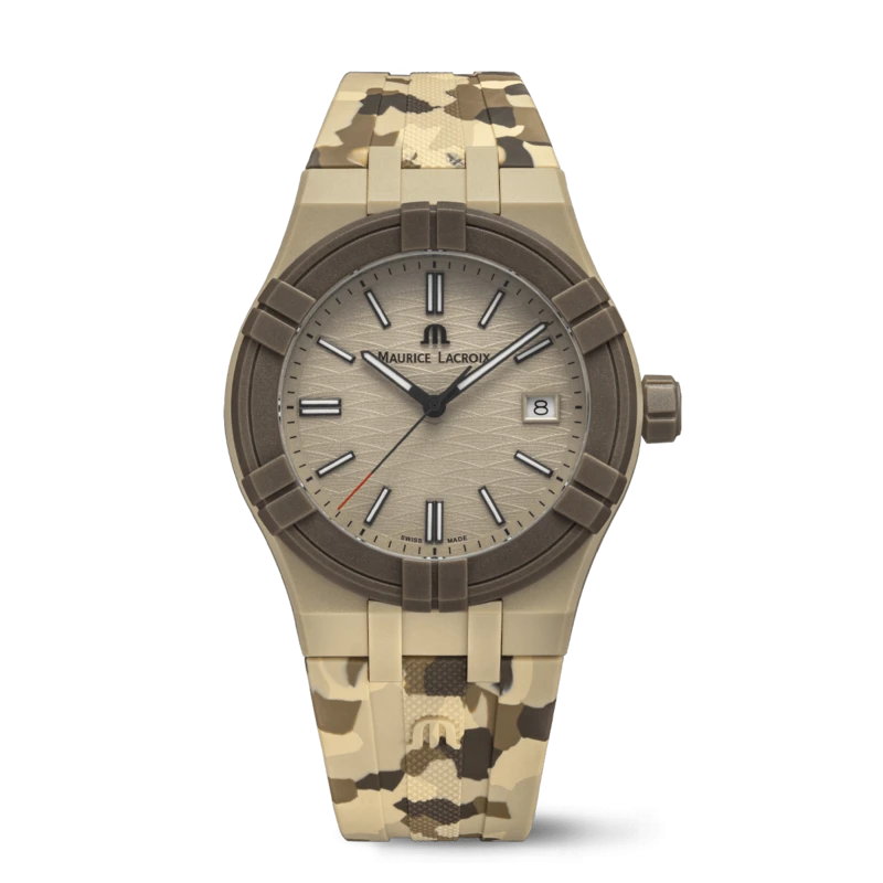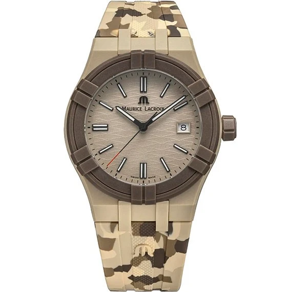 AI2008-IJJIZ000-0 שעון מוריס לקרואה לגברים מהדורה מוגבלת מסדרת טייד | דגם ברצועת ספורט חמה צבאית | מנגנון שווצרי | Maurice Lacroix AIKON #tide Beige Camo Men's Watch AI2008-IJJIZ-000-0