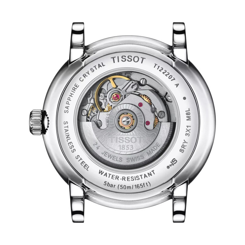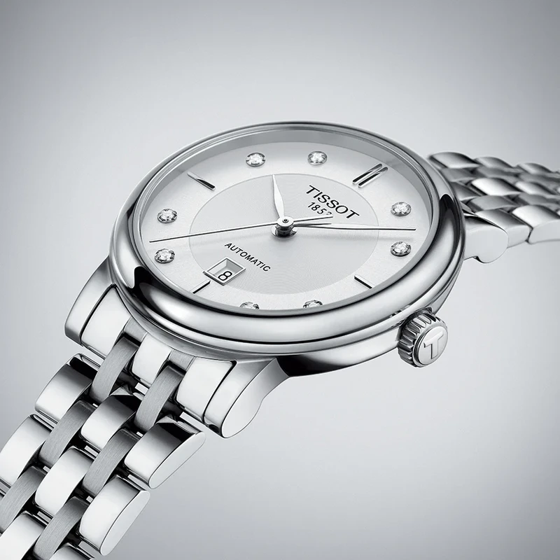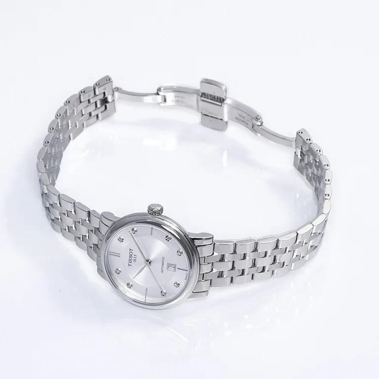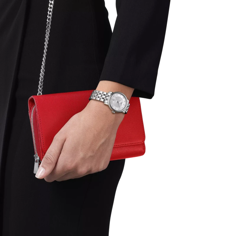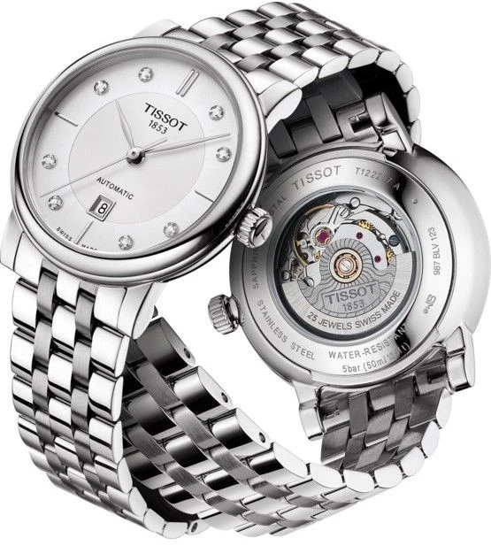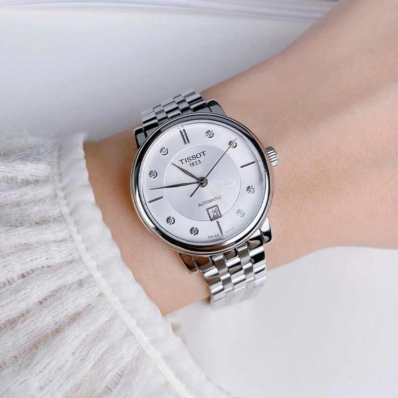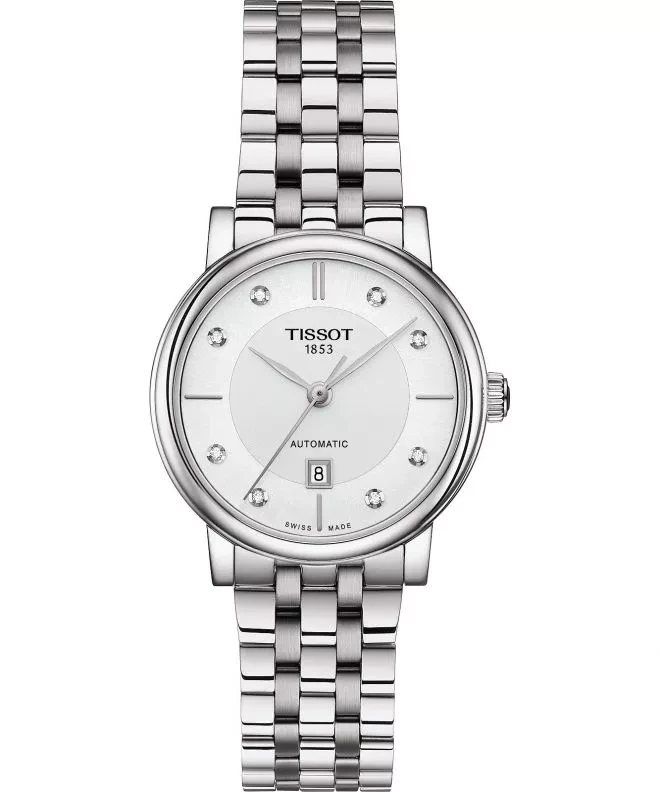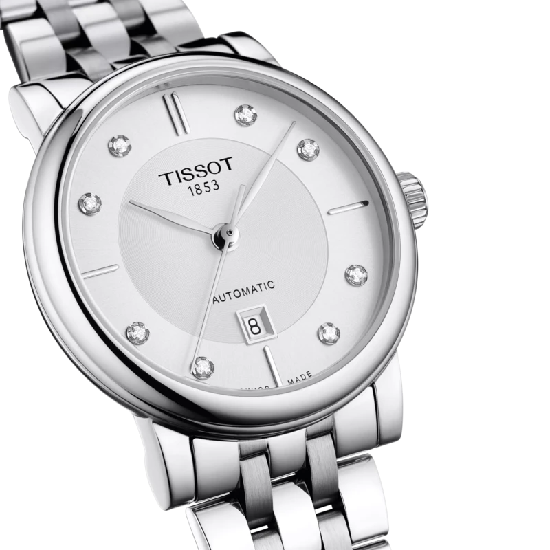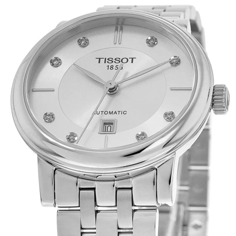 T122.207.11.036.00 שעון טיסו לאישה | דגם אוטומטי בלוח כסוף משובץ 8 יהלומים | שעון אלגנטי שווצרי יוקרתי | Tissot Carson Premium Automatic Lady Diamond Stainless 30mm Watch T1222071103600