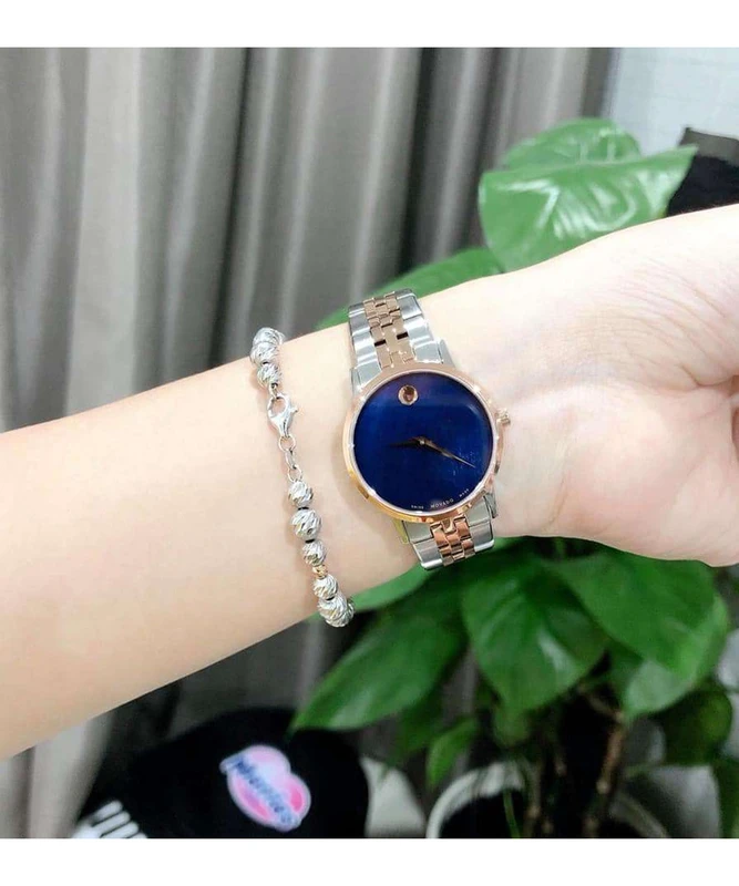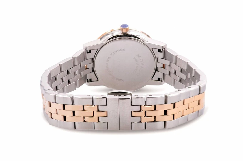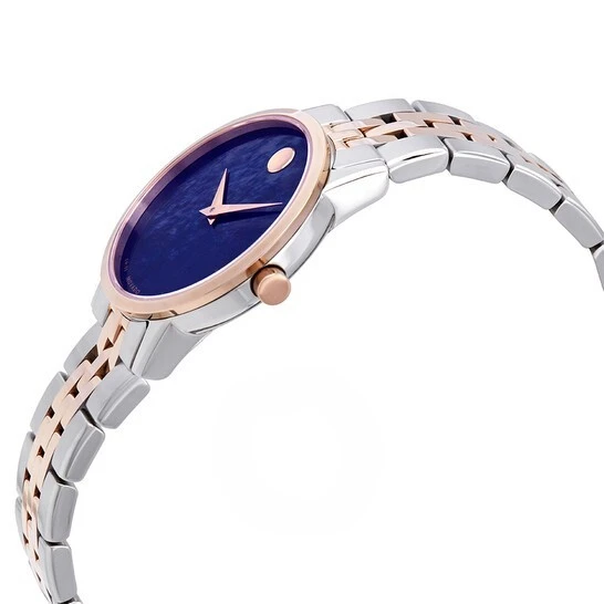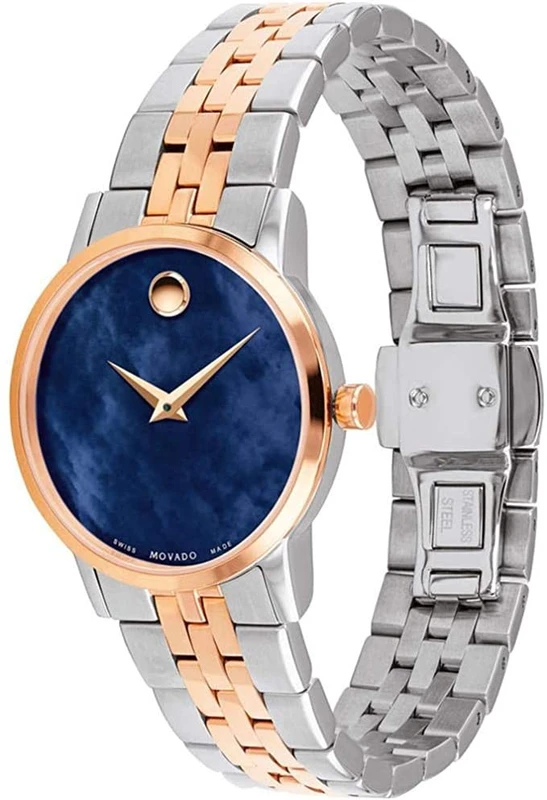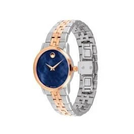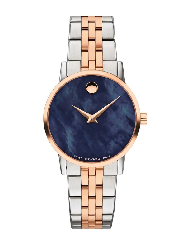 0607268 שעון מובאדו שוויץ נדיר ומיוחד לאישה | לוח כחול פנינה צושלם עם רצועה משולבת זהב רוז גולד | מלאי מוגבל | יבואן רשמי | Museum Classic Blue Mother of Pearl Two-Tone Women's Watch 0607268