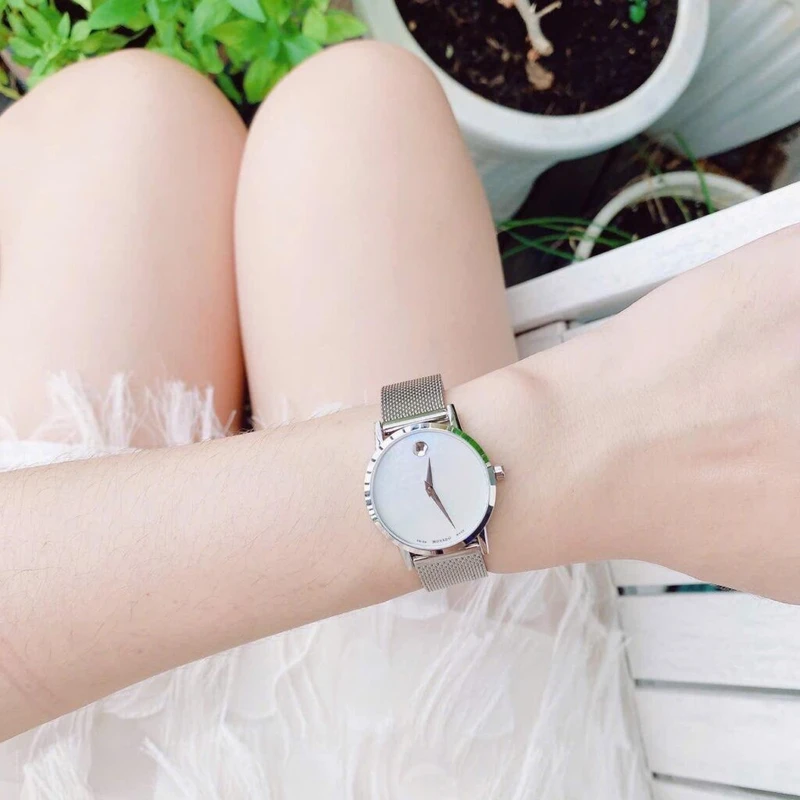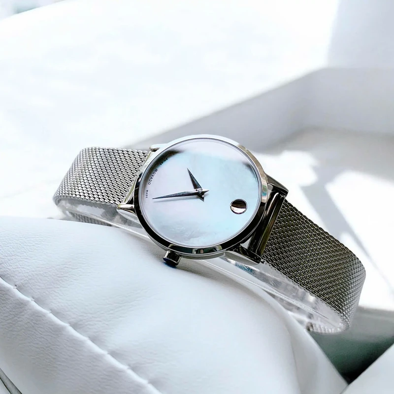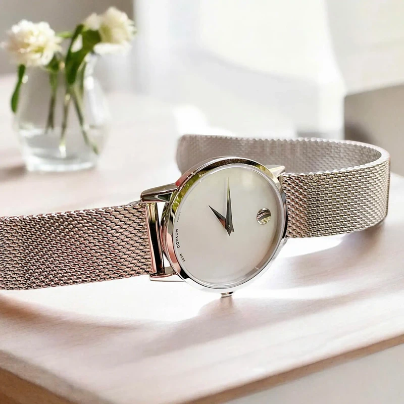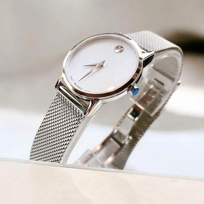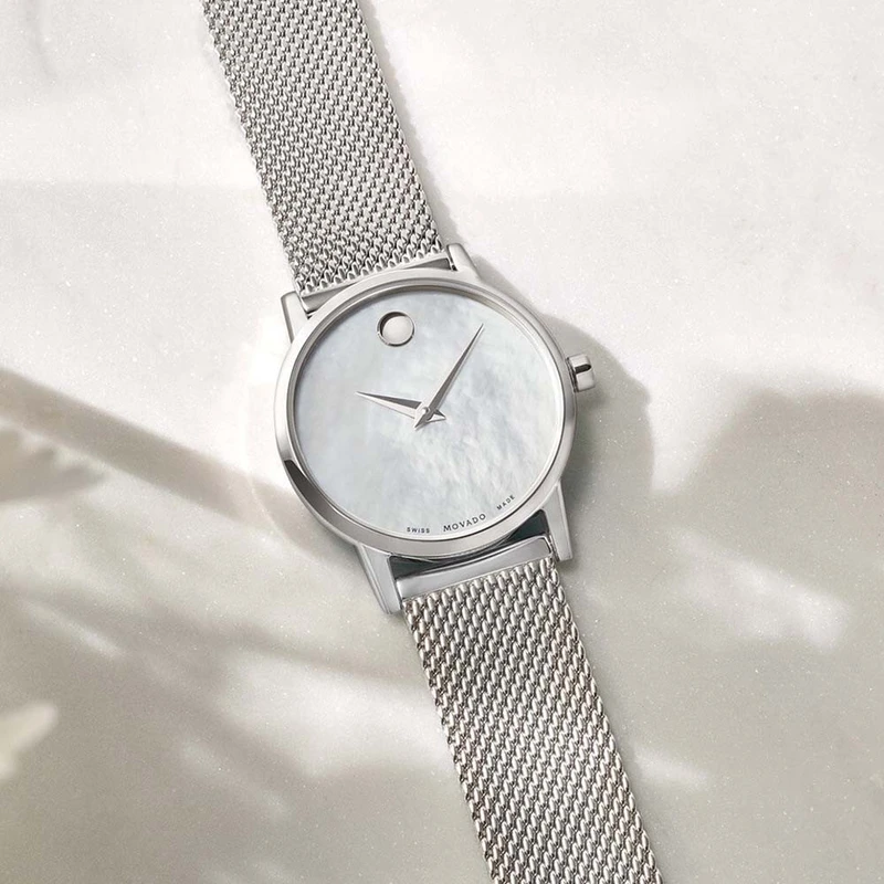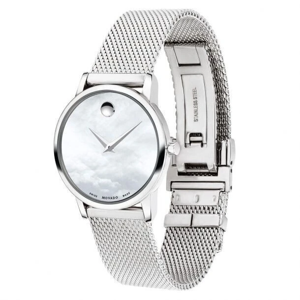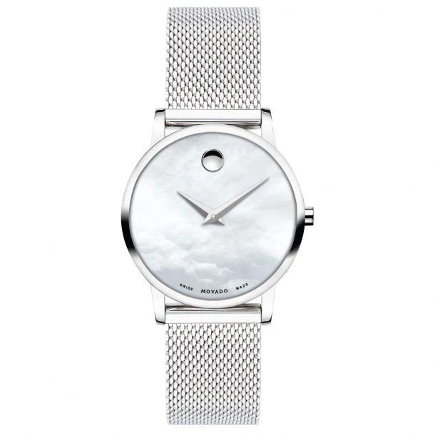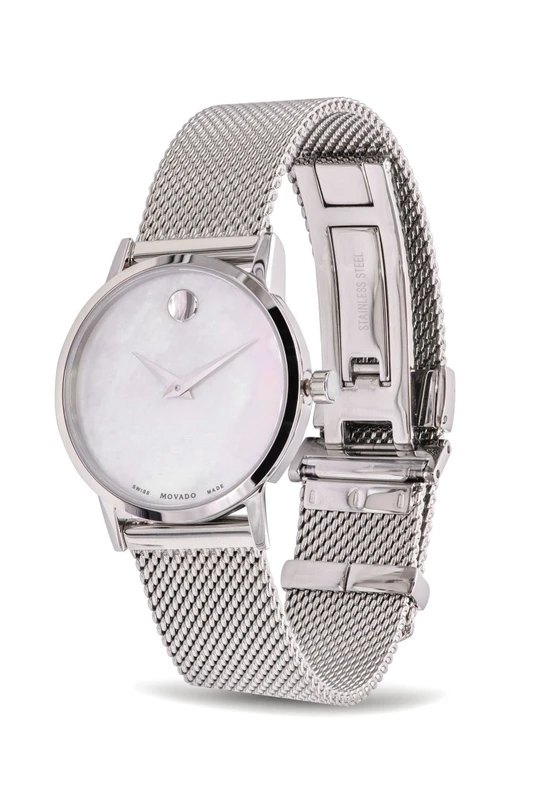 0607350 שעון יד מובאדו מסדרת מוזיאון | שעון כסוף שווצרי בלוח פנינה לבן | רצועת רשת אופנתית | אחריות יבואן רשמי | 0607350 מאת www.purchasedirect.com Movado 0607350 Women's Museum Classic