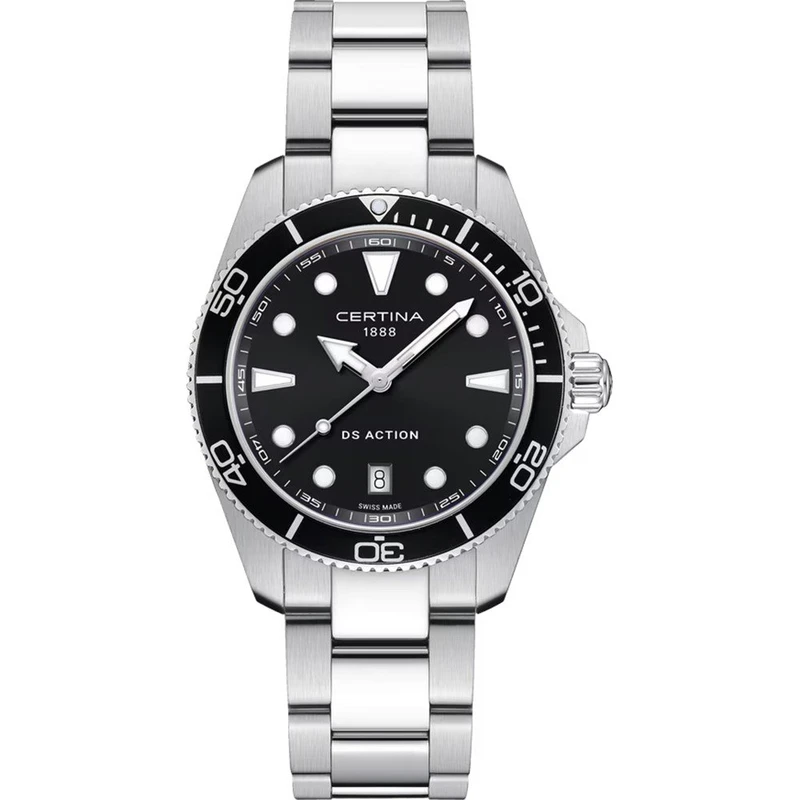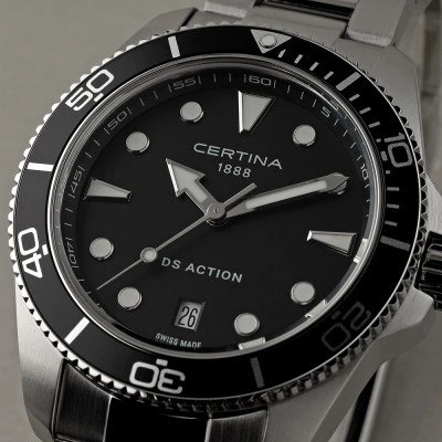 C048.410.11.051.00 שעון סרטינה החדש דגם אקשן לגברים | לוח שחור זרחני עם תאריכון | כולל 5 שנים אחריות יבואן רשמי | Certina DS Action 40mm C0484101105100