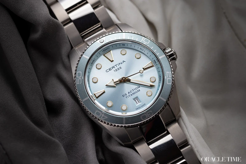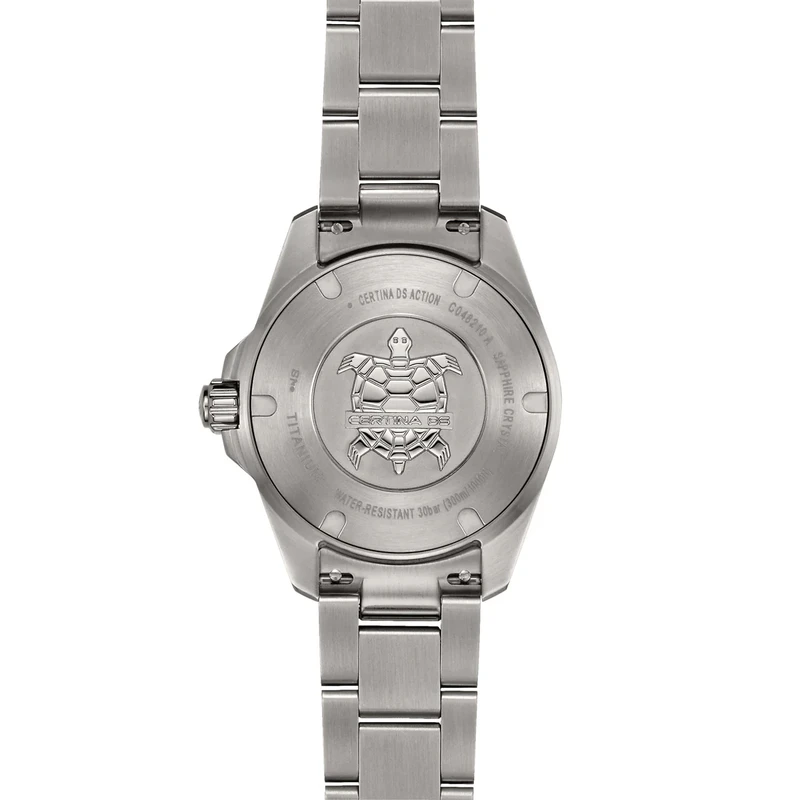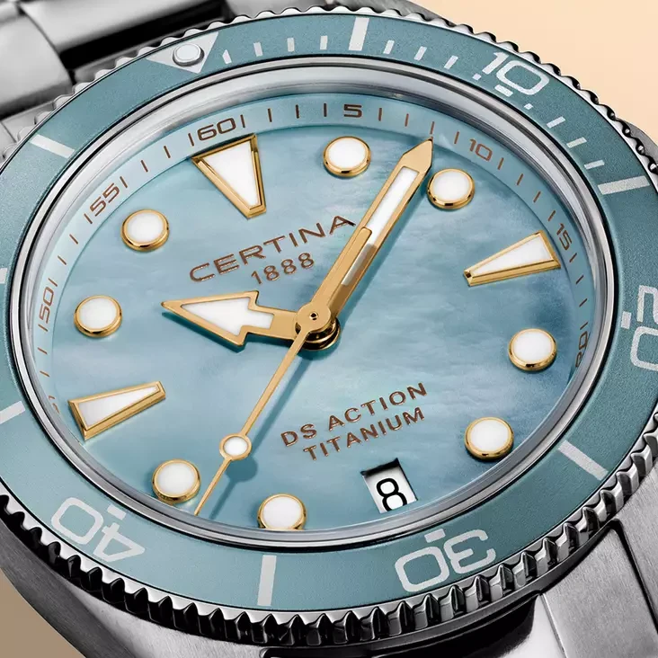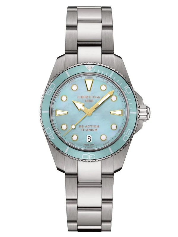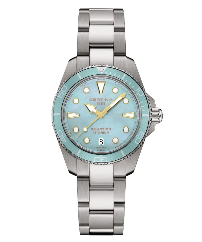 C048.210.44.131.00 שעון סרטינה מהדגמים החדשים של 2025 לאישה | דגם טיטניום קש משקל בלוח טיפני פנינה תכלת מיוחד | 5 שנים אחריות Certina DS Action Quartz C0482104413100 Blue Mother-of-Pearl Titanium