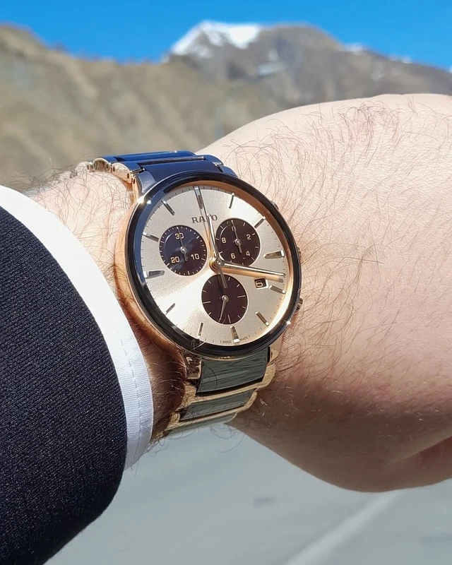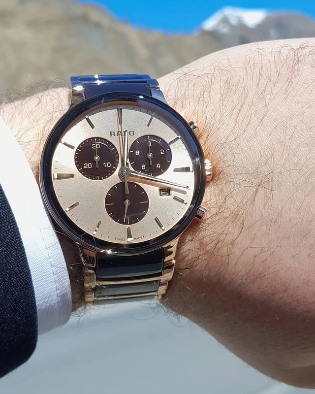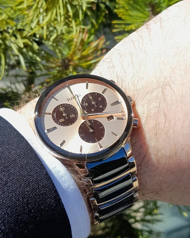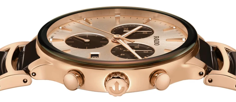 R-62123040 שעון ראדו מסדרת סנטריקס החדשה 2025 לגברים | דגם רוז גולד בקרמיקה חומה ומיוחדת | לוח שמפניה כולל 5 שנים אחריות יבואן רשמי פלאנט | Rado NEW Centrix Chronograph 41mm Mens Watch R30212402