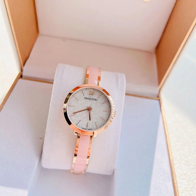 5642221 שעון יד סברובסקי לאישה | דגם צמיד אופנתי | דגם צמיד רוז גול משולב צבע ורוד | לוח אבנים מיוחד | שנתיים אחריות | Swarovski Watch Crystalline Delight Rose Gold 5642221