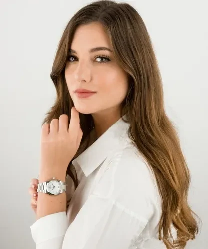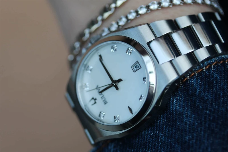 צבע לוח השעון : לבן פנינה - משובץ 8 יהלומים