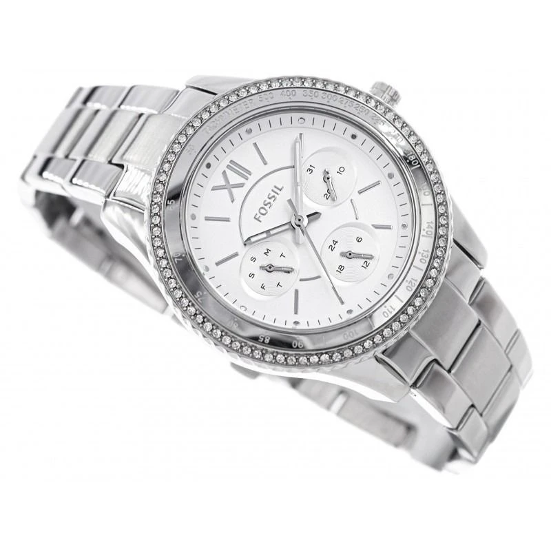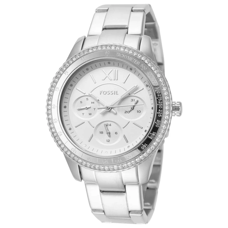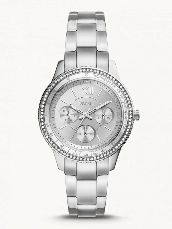 ES5108 שעון יד פוסיל לאישה | דגם משובץ זרקונים כרונוגרף | שעוני אופנה גדולים לנשים | שנתיים אחריות | Fossil Women's Stella 37mm Quartz Watch ES5108