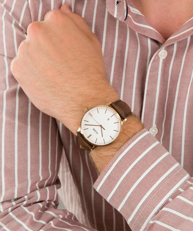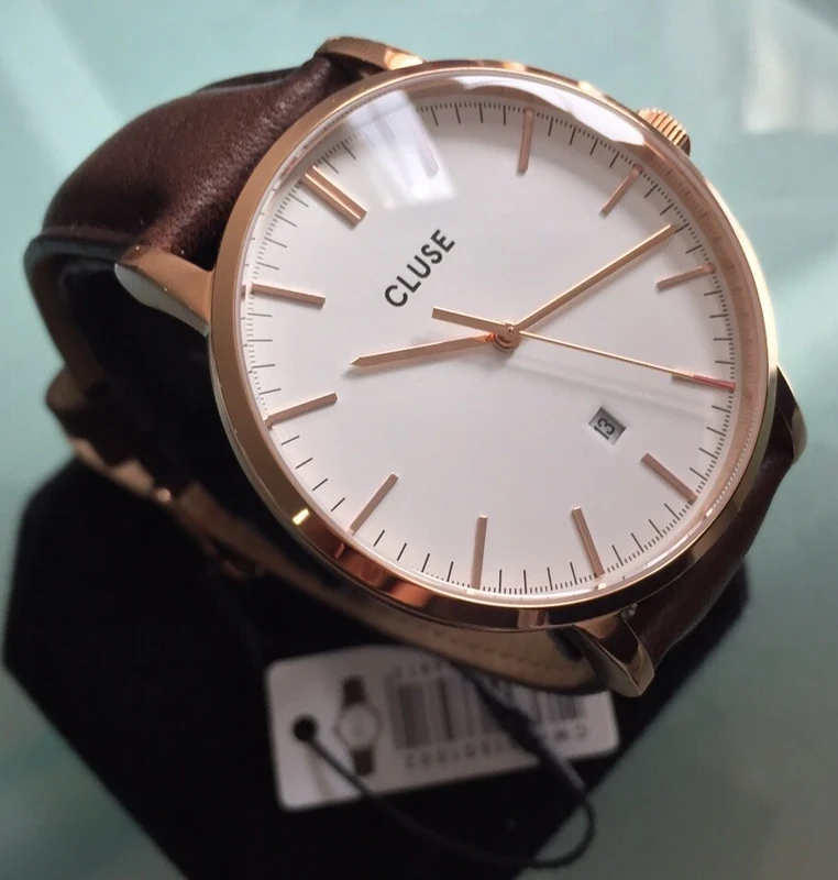 CW0101501002 שעון אלגנטי לגברים של קלוז | דגם רוז גולד ברצועת עור חומה קלאסית | לוח בהיר עם תאריכון | שנתיים אחריות יבואן רשמי | Cluse Brown Aravis Watch CW0101501002