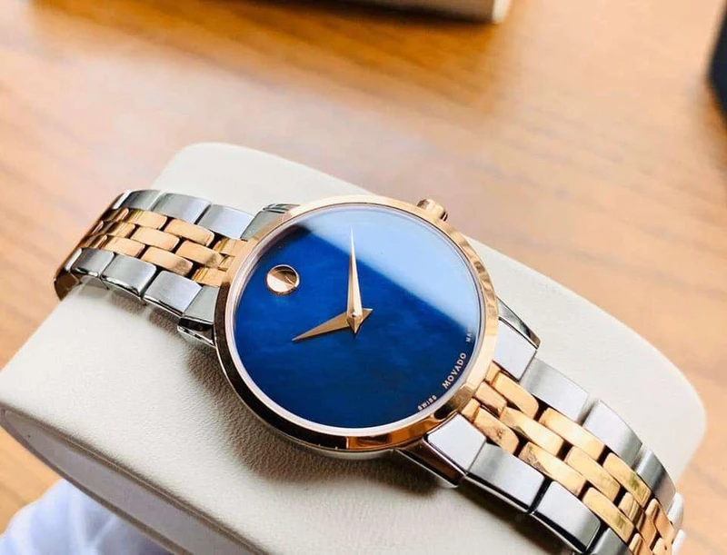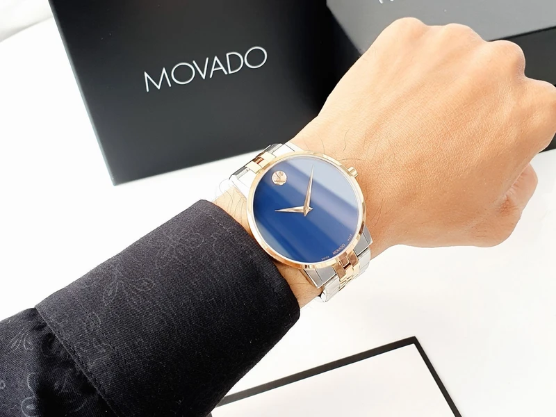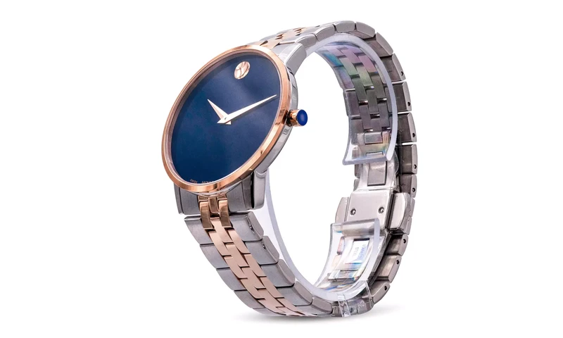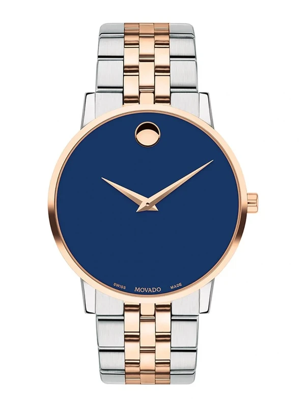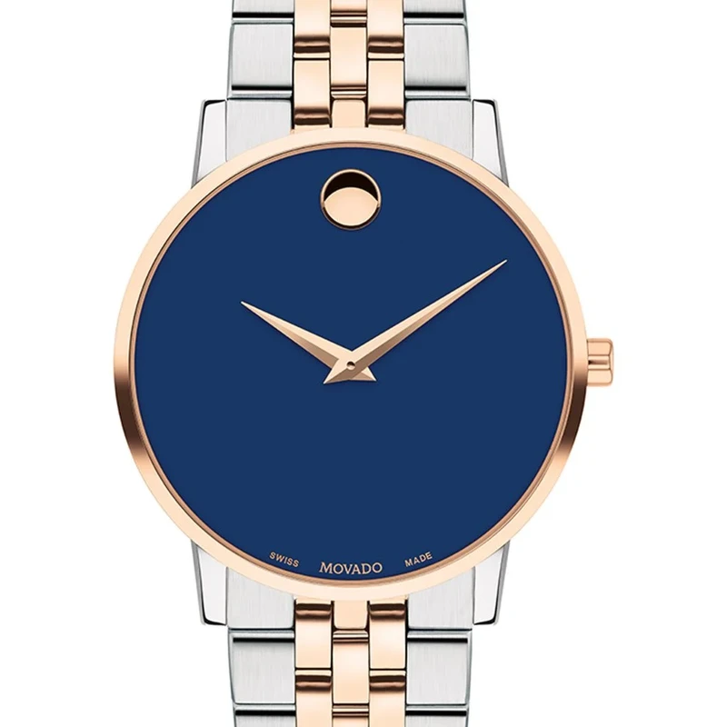 0607267 שעון יוקרה של מובאדו שוויץ לגברים | דם משולב זהב רוז בלוח כחול מהפנט | שננתיים אחריות יבואן רשמי | מלאי מוגבל | Museum Classic Blue Dial Two-Tone Men's Watch 0607267