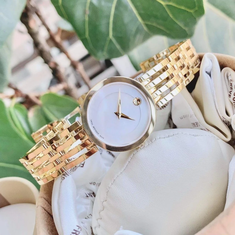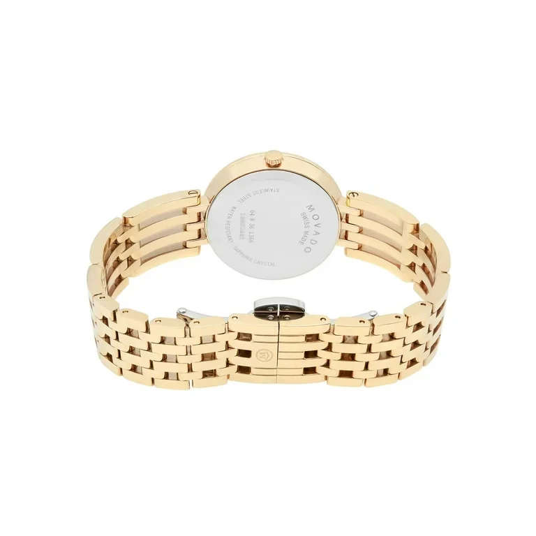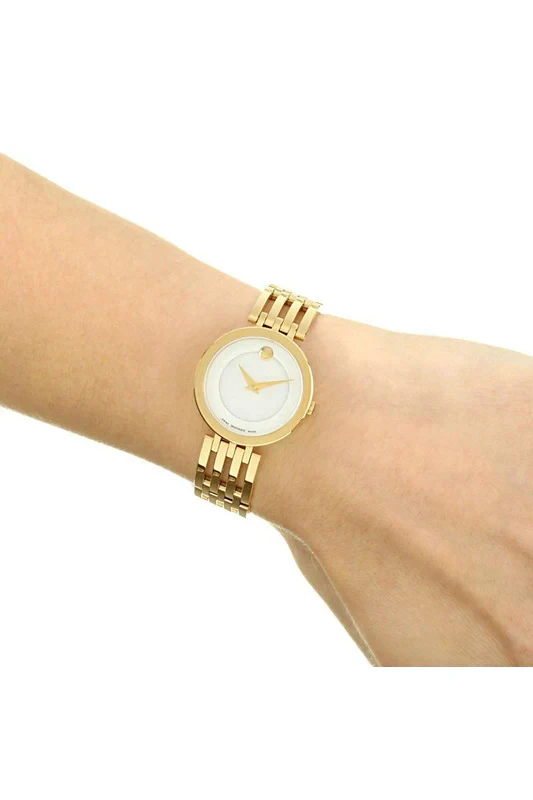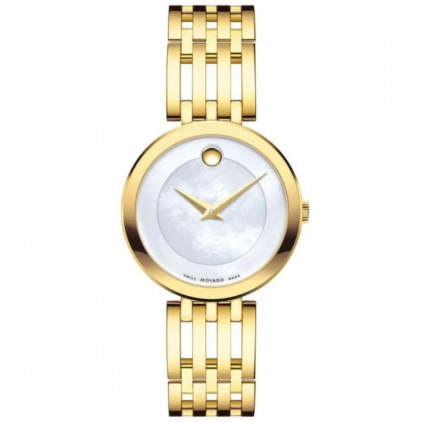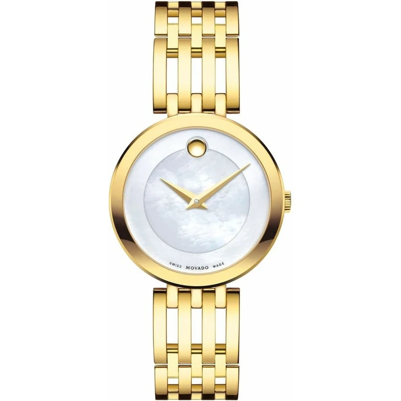 0607054 שעון יוקרה שווצרי לנשים של מובאדו מסדרת אספרנזה | דגם צמיד מיוחד בלוח פנינה מרשים | שנתיים אחריות יבואן רשמי | MOVADO Esperanza 28MM Mother Of Pearl Dial Gold Women's Watch 0607054